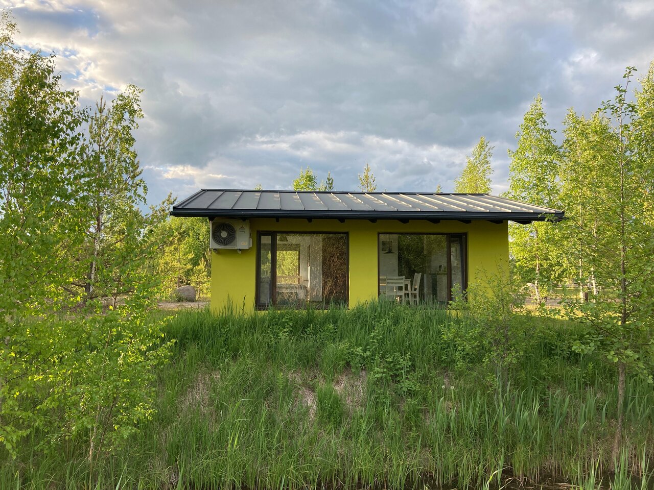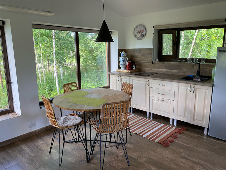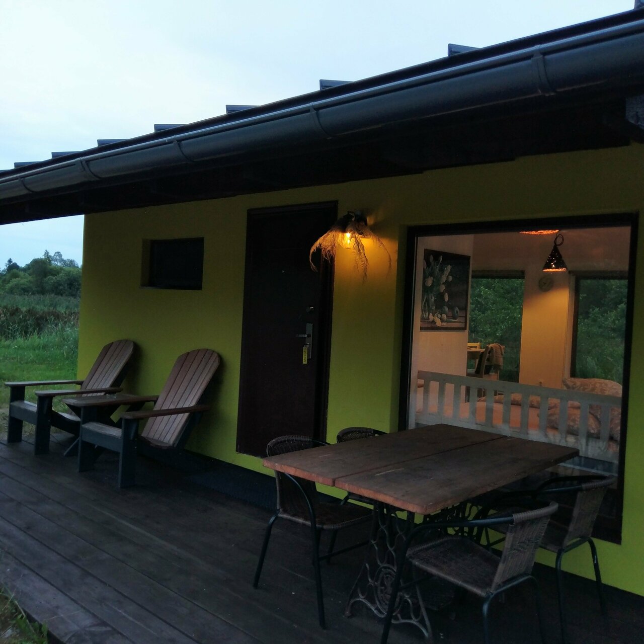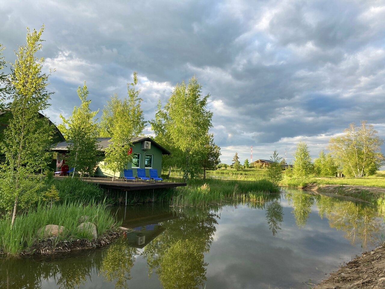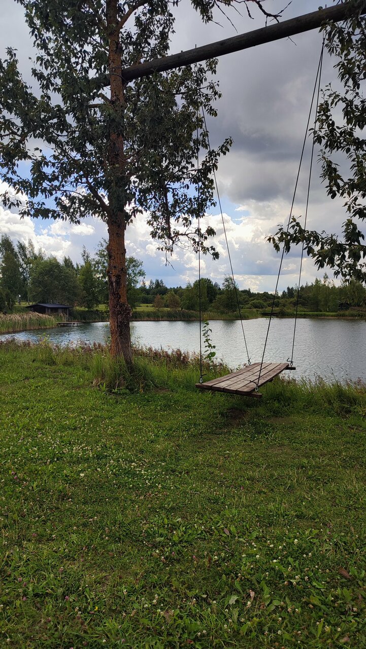 Необычное место, но мне очень нравится. Несколько разбросанных по территории домиков, оформленных с хорошим вкусом в скандинавском стиле, в которых есть все удобства, включая кондиционер, холодильник, микроволновку, плиту на одну-две конфорки. Около каждого домика настил с шезлонгами, столом и стульями и даже гамак. На территории несколько прудов, в том числе большой, глубокий и чистый пруд для купания с мосточками и баней. Также есть отдельная баня. Все очень хорошо продумано и удобно. Прекрасное место для отдыха от суеты большого города. Были там два раза и не исключено, что поедем еще.