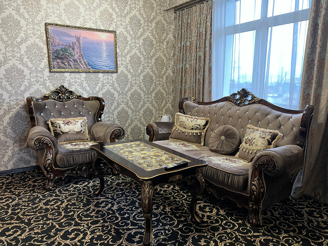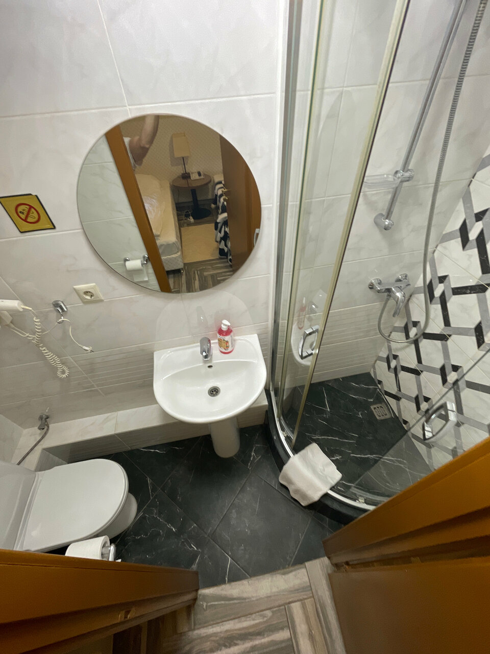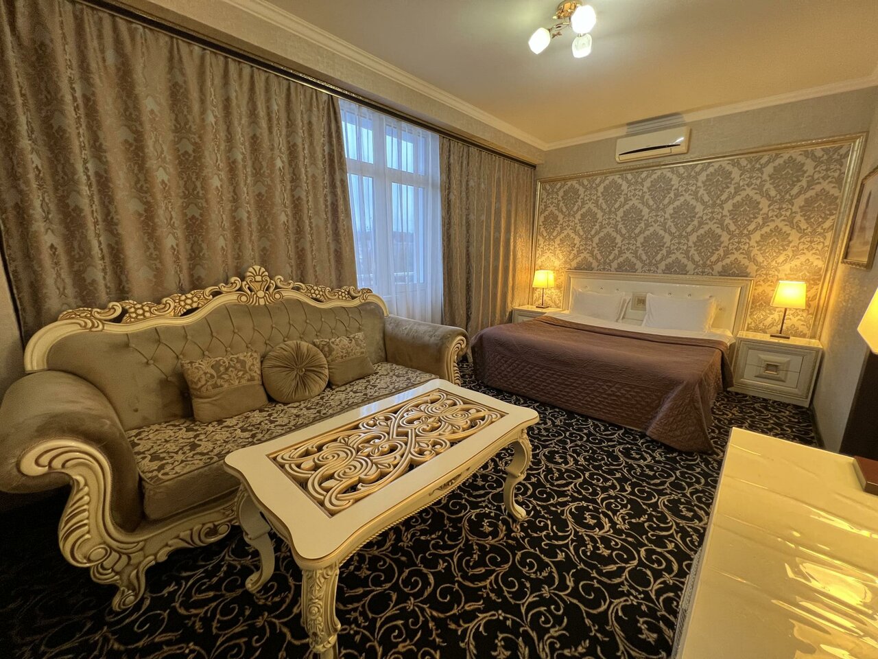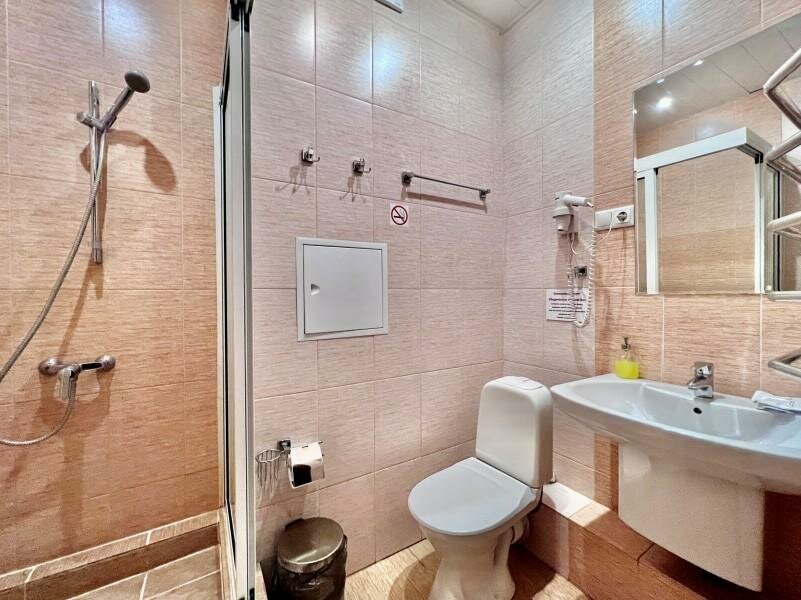 Близко к аэропорту, есть парковка. Заселили в номер люкс, оказалось, что он прямо возле ресепшена и очень высокая слышимость, всю ночь, кто-то заселялся и выезжал. Матрас плохой с пружинами в санузеле пахло канализацией. В номере тепло, напор воды в душе хороший, вода уходит нормально.