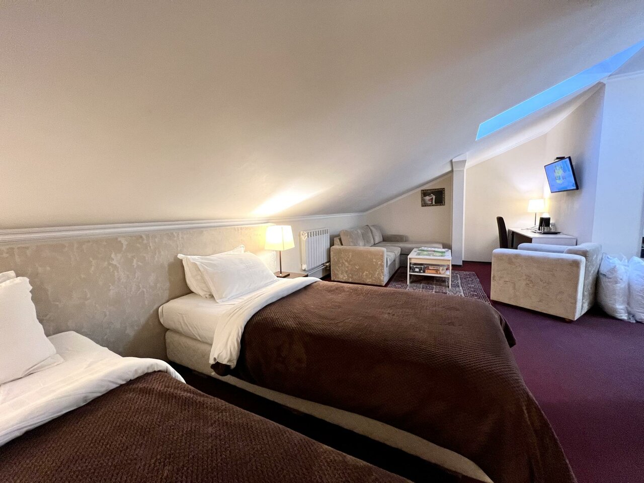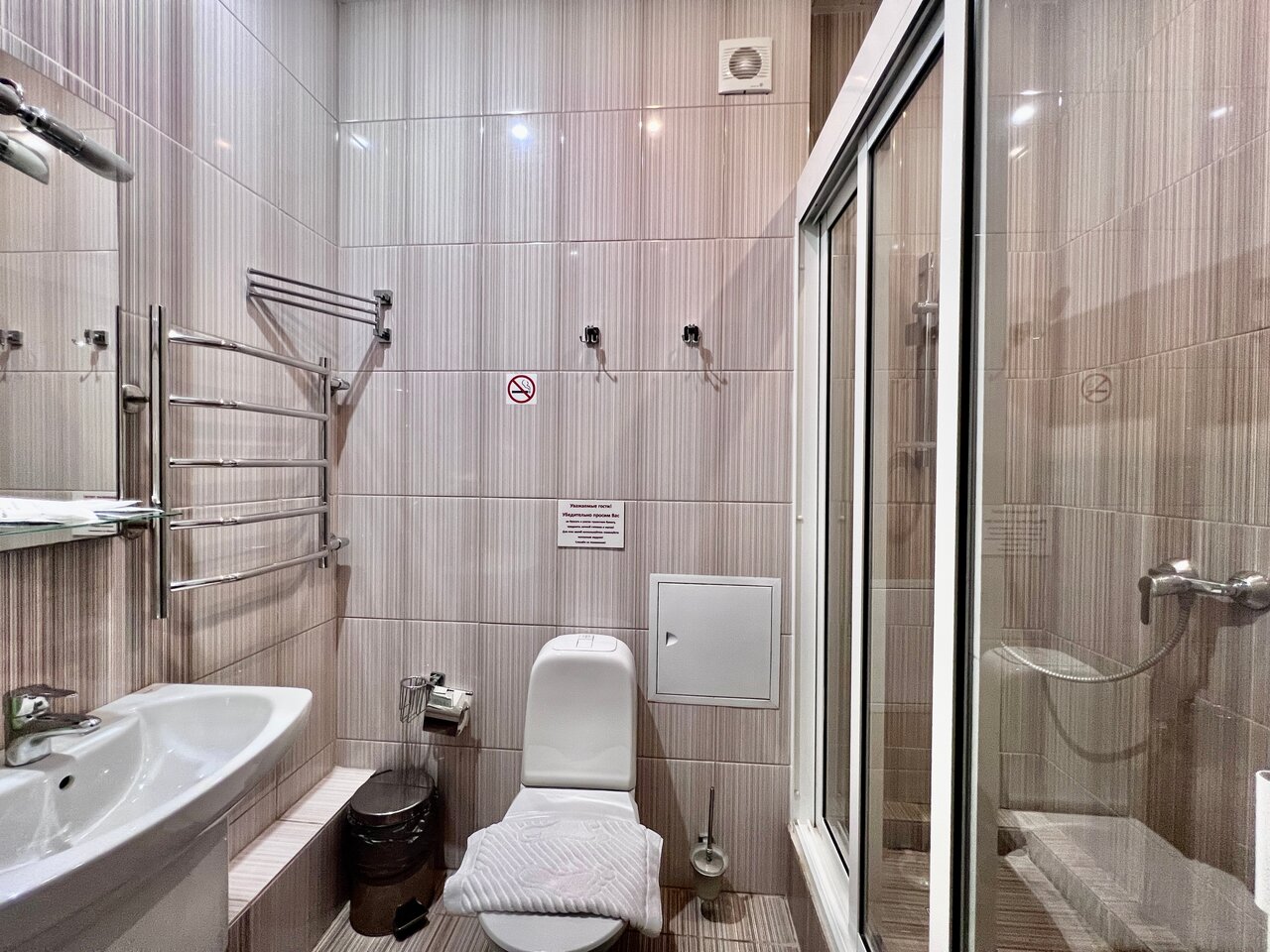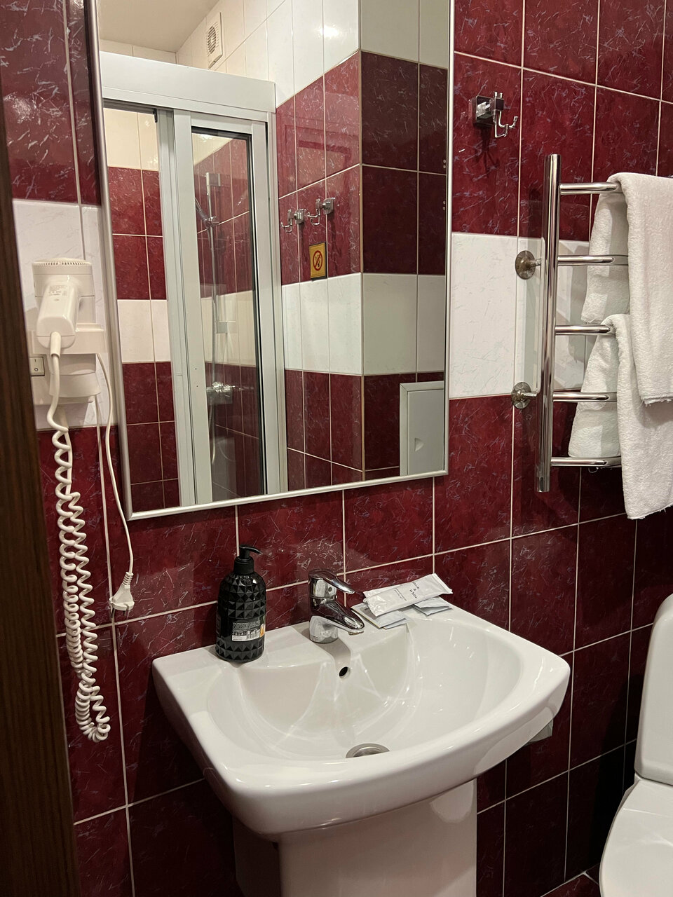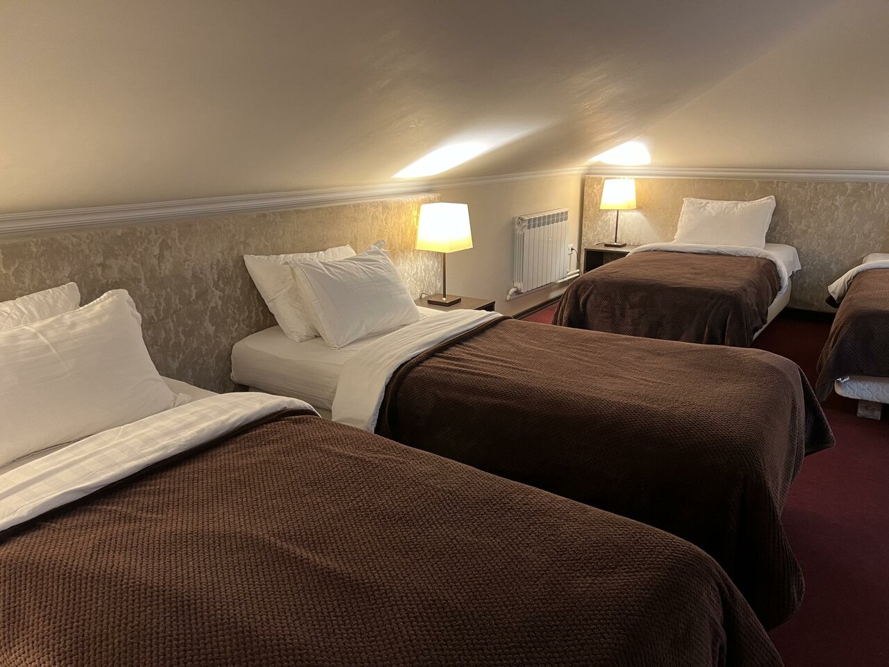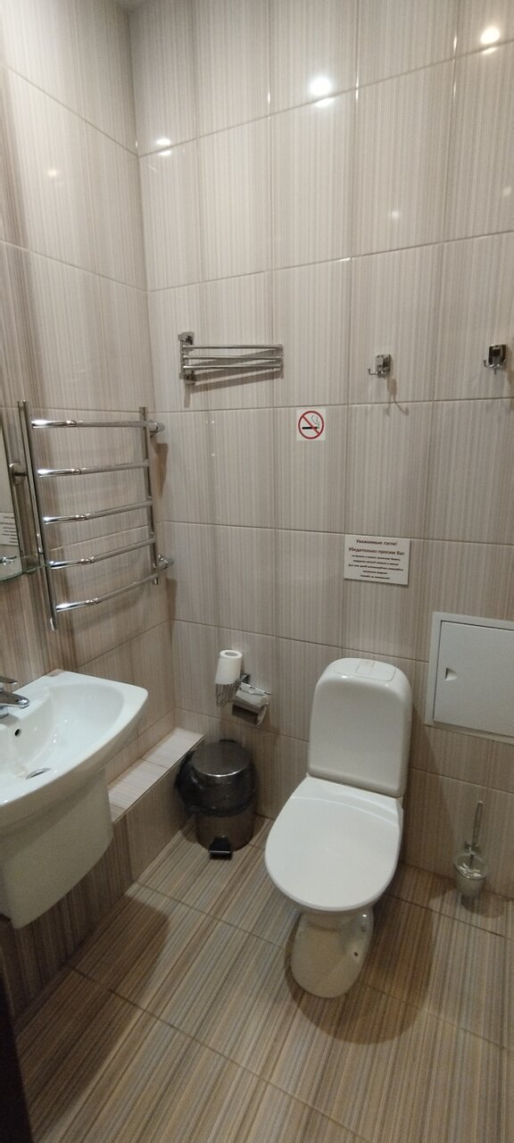 Только положительные впечатления от этого отеля:номер теплый и чистый, удобный матрас, тапочки, чайник. В нашем номере помимо двуспальной кровати была еще односпальная. Поужинали в ресторане отеля. Сотрудницы очень вежливые и приветливые. Огромный плюс -бесплатный трансфер до аэропорта.На ресепшн мы лишь сообщили время желательного отъезда из отеля. Ехать недолго-минут 10-15 Отелю желаю процветания
