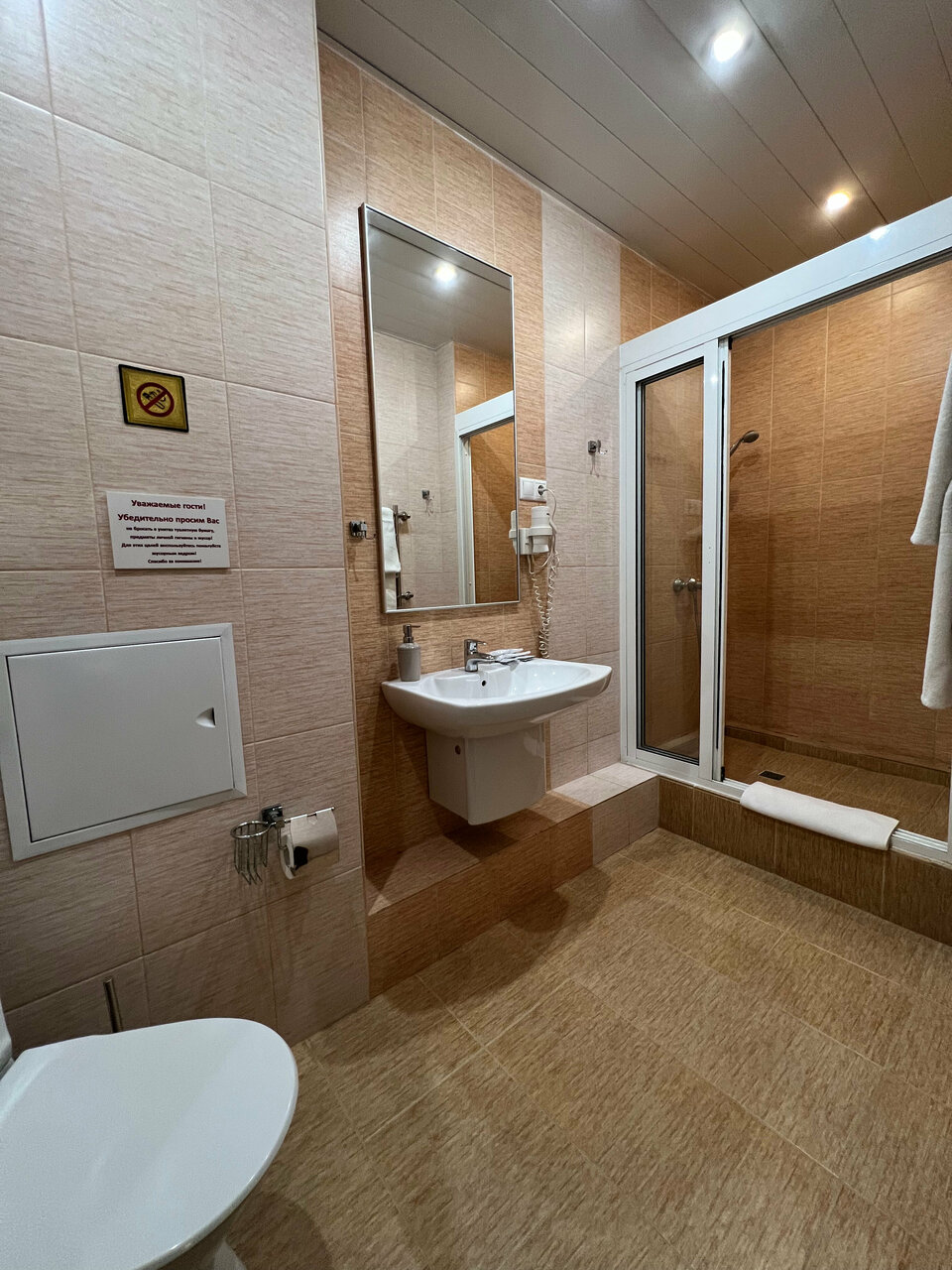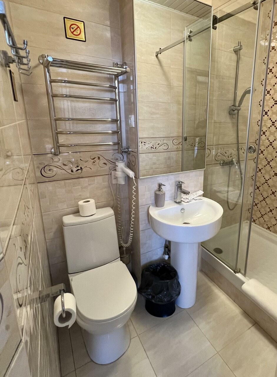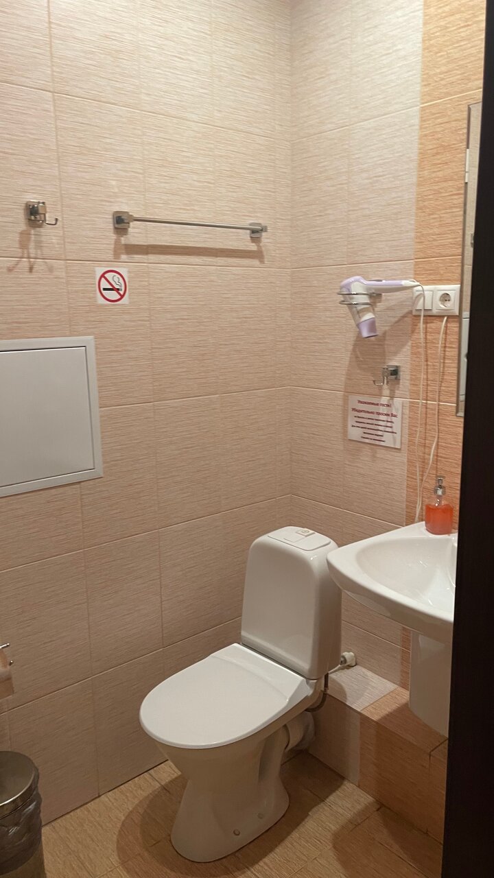 В гостинице жуткая антисанитария, сигаретные бычки от старых поситителей лежали прям под кроватью + не смытый ‘подарочек’ В уборной(