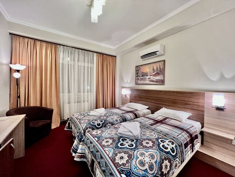 Фотографии и цены с сайта не соответствуют реальности, вместо 1850р за ночь светлая женщина в очках с рецепшена брала 3850р. Номер был так себе, постельное белье судя по всему даже не поменяли после предыдущих гостей, было замечено пару тараканов. Ну и конечно же хамство и провокация со стороны все той же 60-ти летней женщины в очках, выспаться после долгой дороги не дала начала трезвонить в номер мол спускайтесь срочно продливайте а то выселю, а в начале в первые минуты заселения и вовсе устроила кипиш на ровном месте когда ее попросили дать чистый анкетный лист. Цитирую: ‘что-то не нравится вот там дверь давайте на выход’… Однозначно не рекомендую это место.
