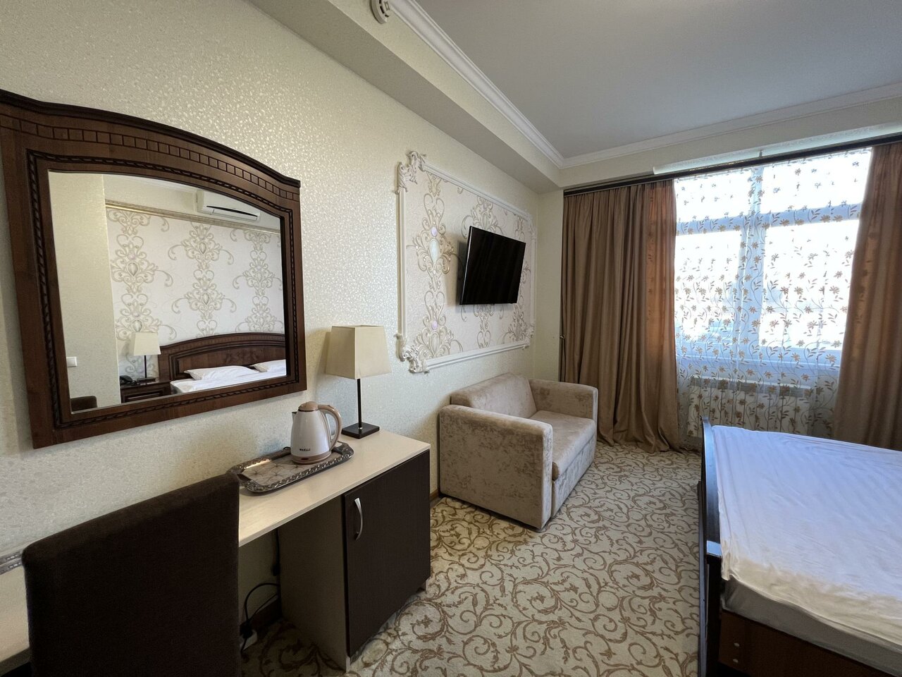 Номер ,который я снял был грязный,кондиционер не работал,воды не ставят в номере,сказали покупайте,возле отеля,идет стройка,в кафе стоит ужастный запах,номера обшарпанные,хоть я был и транзитом,но остался в шоке ,от увиденного!!! За номер заплатил 3.950 ,но даже этих денег отель ,не стоит