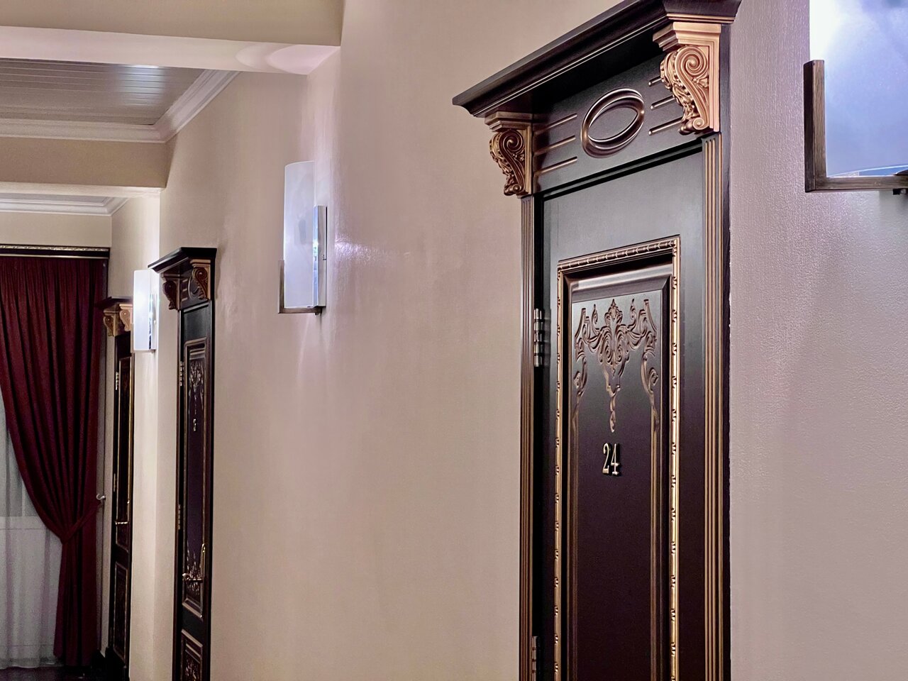 - Наличие односпальной кровати в дополнение к двуспальной.; Хороший напор воды в душе.; Красивый дизайн отеля и номеров.; Уютная атмосфера.; Близость к аэропорту.
