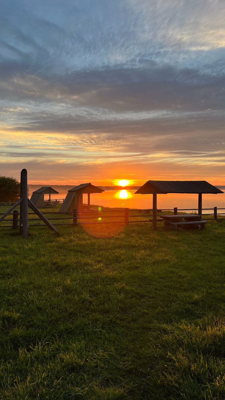 Ночёвка на автодоме по 200 со взрослого 150 ребёнок. На территории туалет беседки. Но самое главное — берег озера. Он прекрасен как и закат.