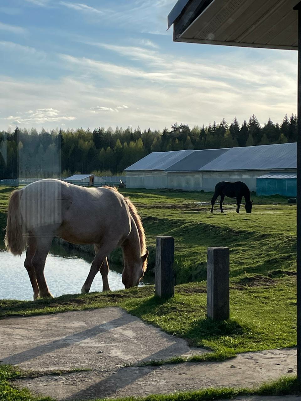 - Красивая природа, чистый воздух, возможность гулять.; Большая гостиная на первом этаже с столами и лавочками.; Уютные и чистые комнаты.; Летом особенно приятно, есть лошадки.; Недалеко от города.