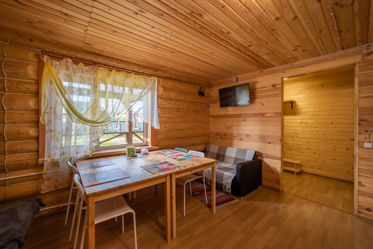 Отличное место! Приятный деревянный домик, очень просторно на территории. Хозяева дружелюбны. Возле участка есть озеро, место для купания оборудовано. Можно было взять моторную лодку в аренду. А лодкой на вёслах и вовсе можно было пользоваться бесплатно, что очень порадовало!