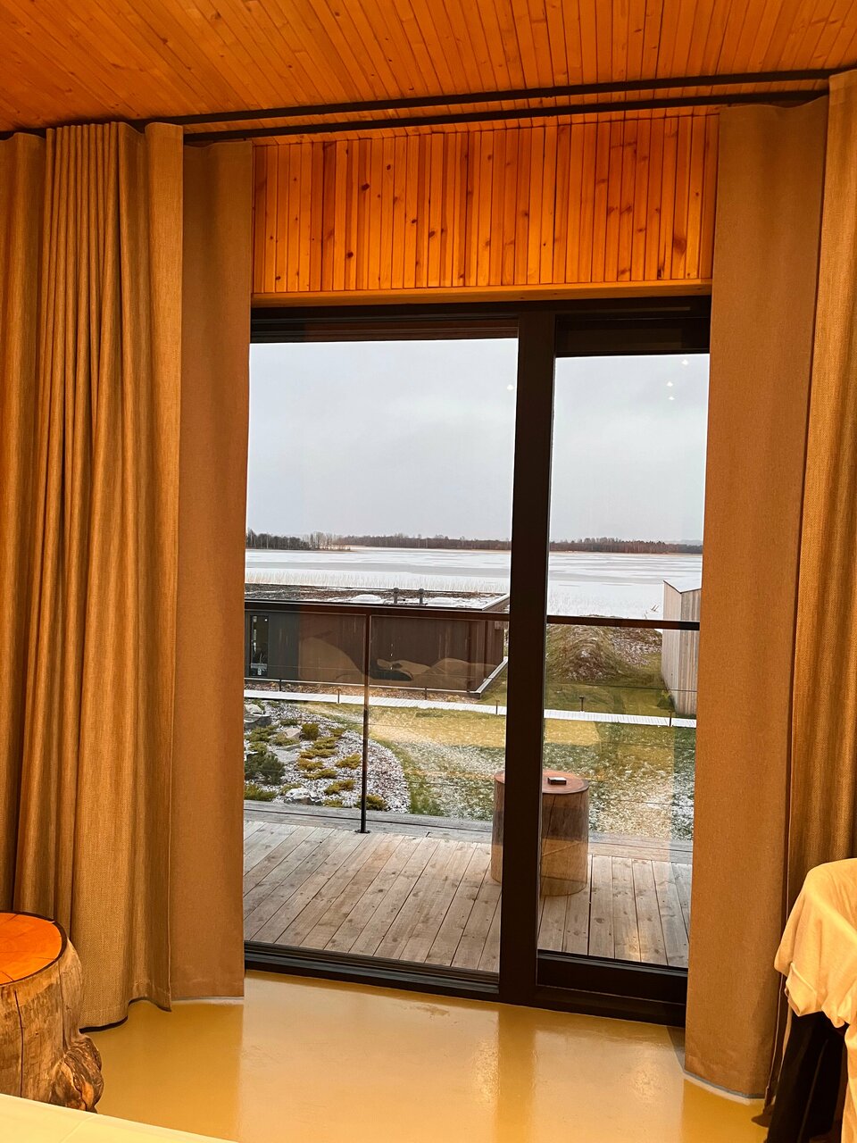 Отдыхали в этом отеле в период новогодних каникул. Теперь рекомендуем всем своим друзьям и знакомым! Если вы мечтаете отдохнуть вдали от городского шума и суеты, но при этом хотите отдохнуть в комфорте на высочайшем уровне — вам точно сюда надо! Для меня это был период обнуления в хорошем смысле этого слова: потрясающий номер с видом на озеро сочетает в себе роскошь современных инноваций для комфортного проживания и натуралистичность природы в каждой детали. Смотрите сами, фото прилагаю. Отдельный комплимент шеф-повару — блюда из традиционных карельских продуктов редко можно встретить в таком исполнении: ценителям особенно рекомендую форшмак из беломорской сельди и северные равиоли. Отдых наш длился 2 дня, а по ощущениям отдохнули как в полноценном отпуске. Пожалела, что не взяла с собой нейрографику — идеальные условия для таких практик. Рекомендую посетить этот отель и перезагрузиться по полной программе