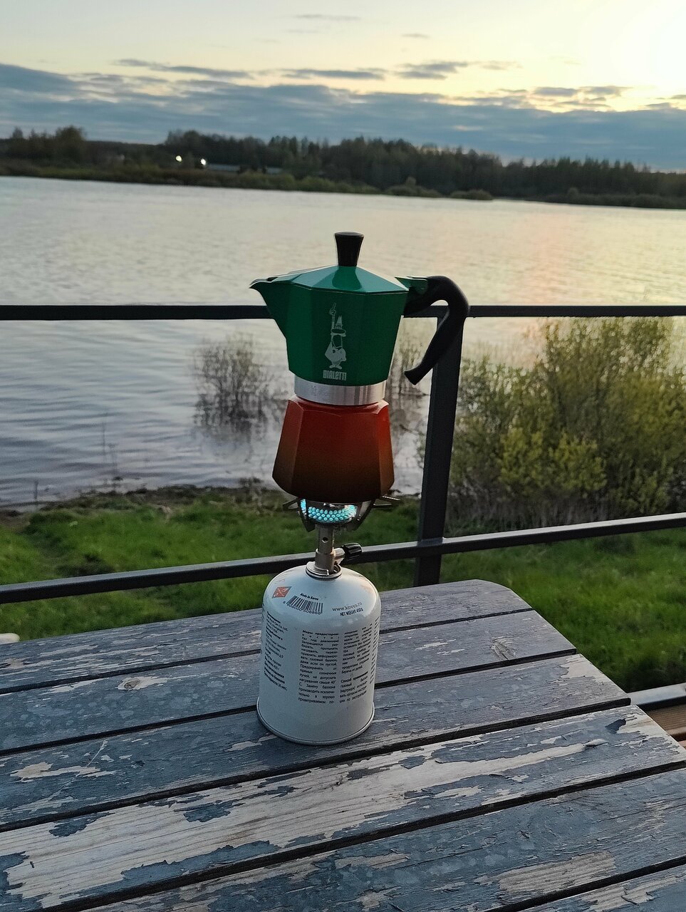 Хороший, уютный домик, всё очень аккуратно и красиво. Прекрасный вид на реку и закат, тишина и покой. Есть посуда, холодильник, плита, кофеварка. Удобные спальные места. Только большие окна почти не занавешиваются, вечером солнце в окно, а утром непривычно светло.