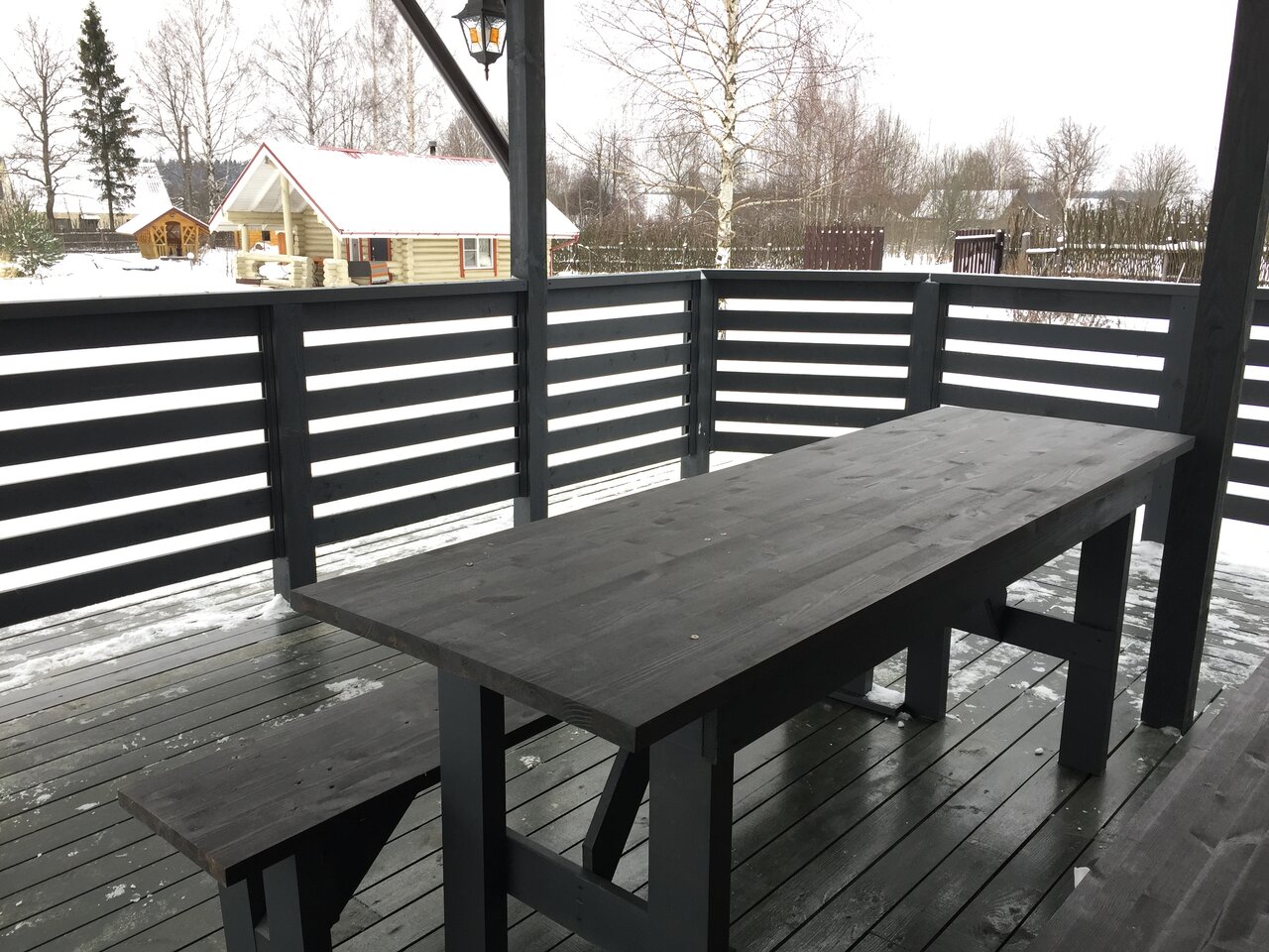 Банный домик включает в себя финскую парную, где комфортно может разместиться 4-5 человек; душевые, туалетную комнату и зону отдыха, где есть стол, удобные скамеечки, чайные приборы, а также заварка, сахар, кулер с водой