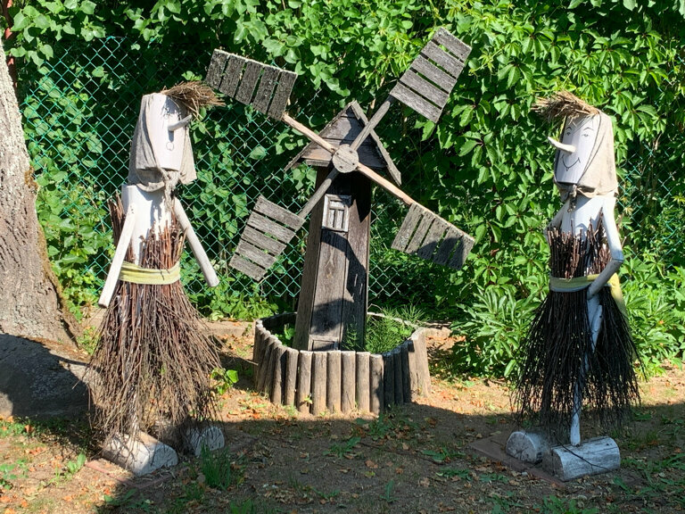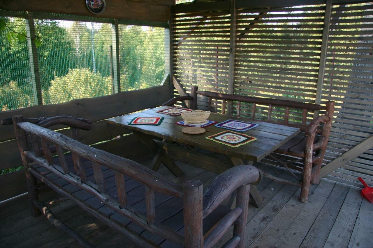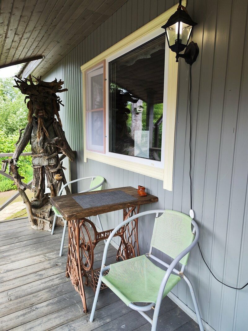 место приглянулось. сказочные персонажи встречаются в неожиданных местах, выполнены с душой и задумкой, без перебора, в глаза не кидаются, создают свой колорит. приятное просторное место, добротно выполнено все, с чем сталкиваешься. просторная беседка во дворе для летних посиделок, столик с парой стульев на входе в домик. во дворе теннисный стол!!!, бадминтон, крепкий хоть и старенький турник(мозоли будут тоже крепкие, проверено), основательные качели. конечно, есть место для мангала и шашлыков- все рабочее, естественно, только учтите необходимость готовить только на углях, дрова запрещены. во дворе за дубом родник. понятно, что комаров хватает, зато и птиц, про которых ты уже забыл- немало, увидишь снова. в доме умеренно наточены ножи!, посуда чистая. туалет, душевая кабина, все чистое и опрятное. очевидно, место под приглядом хозяев. рекомендую любителям Кантри, сказок и классной природы.