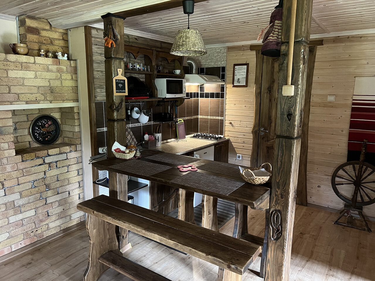 Отличное место, интерьер. В домике все есть, чисто ухожено. Душевные хозяе, приняли отлично. Даже воды родниковой набрали. Завтра будем париться, баню обещали супер.