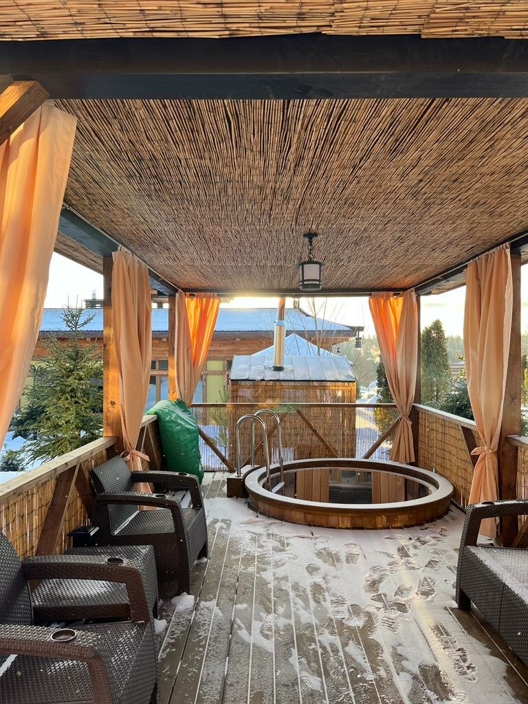 Это чудо место!!! Мы в восторге! Были 3-4 января в самый мороз, при этом сидели в бочке, кайф! Все очень чисто, уютно, все новое и прекрасное. Менеджеры такие приятные , сервис на высшем уровне. Шеф повар- потрясающий!!! Лично встретил , все рассказал, про блюда, которые реально вкусные, по-домашнему. Очень приятный, конечно, Шеф. У нас осталось приятное послевкусие от поездки. Конечно, мы еще приедем