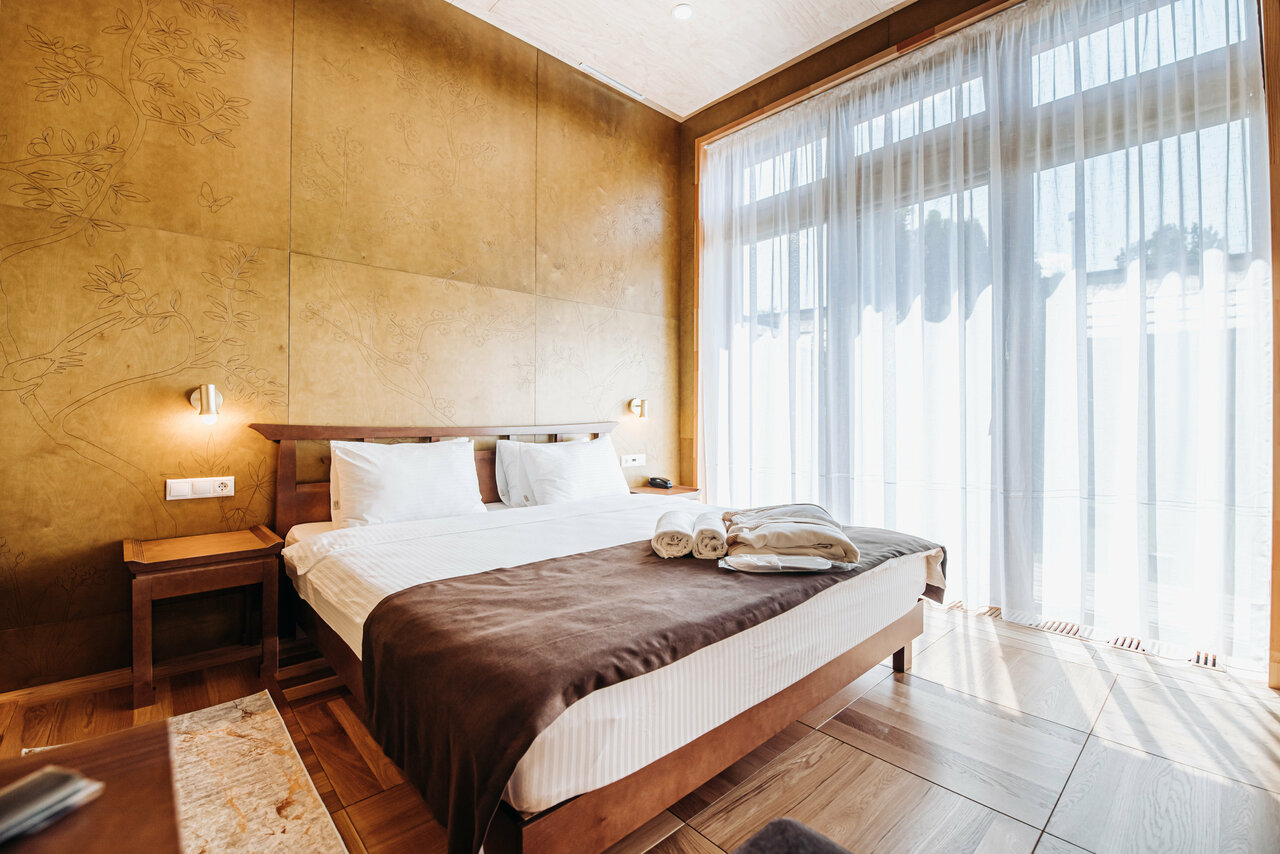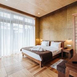 Номер категории DELUXE представляет собой просторный номер, обставленный в современном стиле и оборудованный всем необходимым для комфортного пребывания. В номере есть большая кровать с ортопедическим матрасом, где вы сможете отдохнуть после долго...
