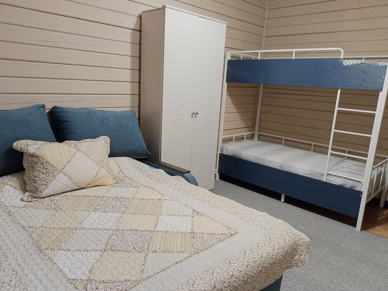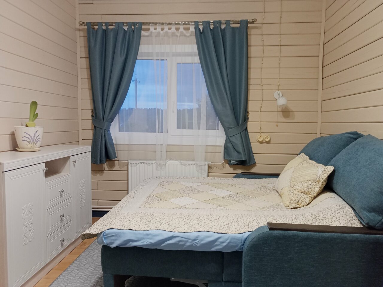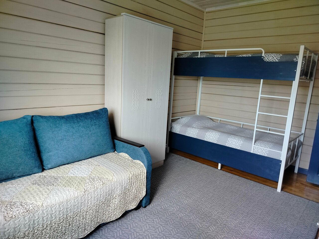 Уютный номер, доброжелательные хозяева, укомплектованная кухня. Из нюансов — очень высокая слышимость, поэтому важно, чтобы повезло с соседями. Или выкупать весь домик)