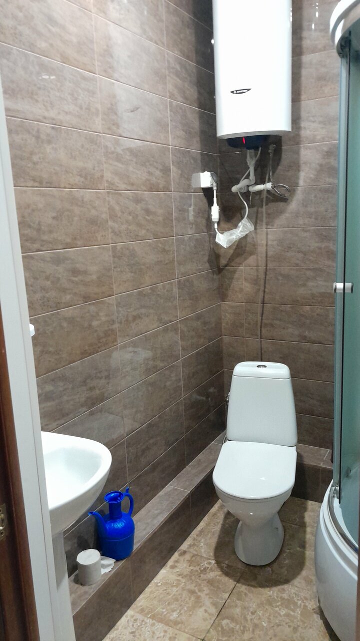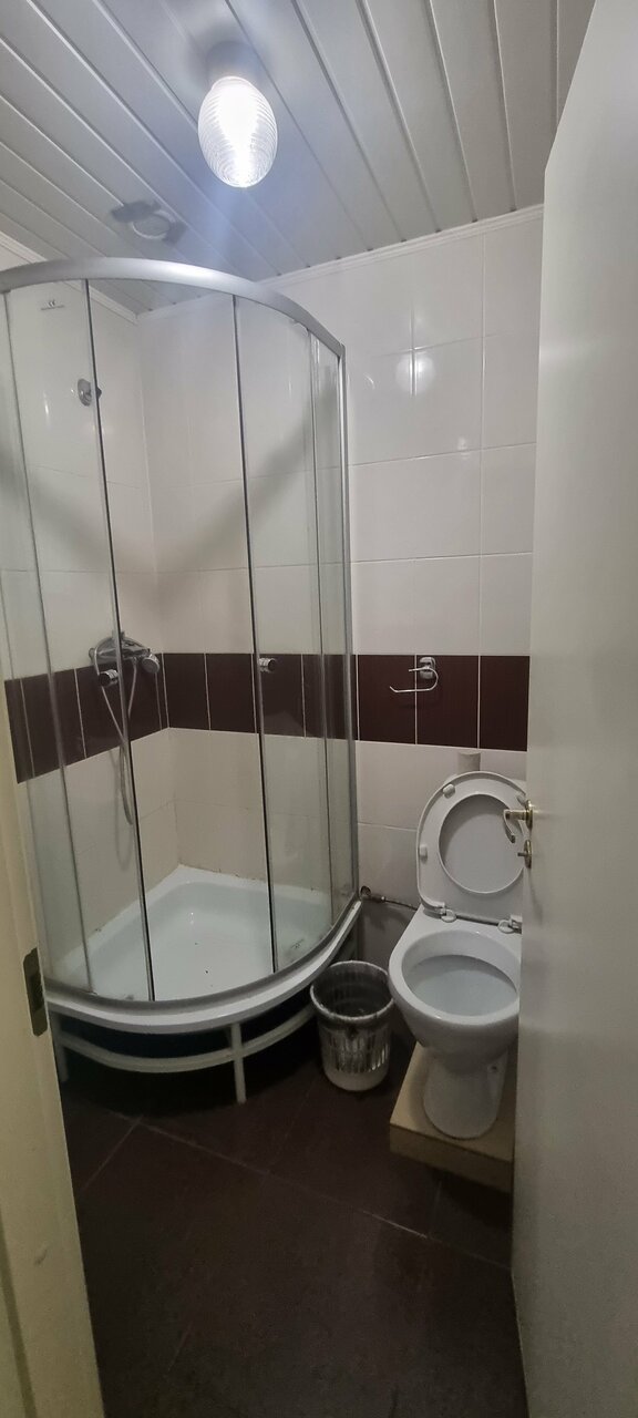 Это просто ужас . Душевая кабина вся ржавая и грязная , страшно было заходить . Самое ужасное -это то , что после долгой и тяжёлой дороги хотелось немножечко постоять в душе под теплой водой . Но увы … Вода идет только холодная …..Туалет тоже грязный , на ободке капли засохшие и короткие черные волосы , даже не хочется представлять откуда они . В номере кровать с уже расстеленной постелью , одеяла нет , только непонятно какая простынь , постель тоже грязная .Этот номер стоит 3 тыс , заранее его не показывают , отдаешь деньги , тебя записывают и только тогда покажут номер, от которого ты уже не можешь отказаться.