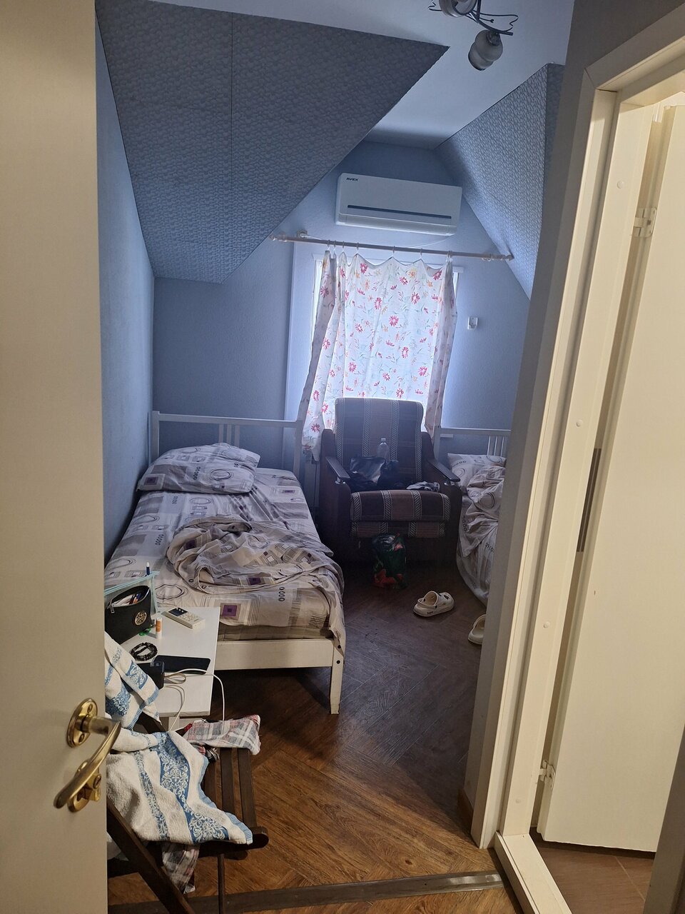 Бывает и хуже. Кровати нормальные, есть чайник в каждом номере. Дорого, конечно, но в сезон дешевле сложно найти, да ещё без предварительного бронирования. Минус в то м, что в душе вода чуть тёплая.