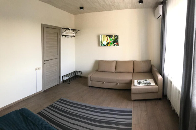 Мы остановились в июлетсемьёй по пути из Крыма. Номер неплохой, есть недостатки — душевая со шторами((( кондиционер работал плохо((( телевизор работал, но каналы не показывали. При заселении стояли и ждали минут 30, чтобы нам наладили кондиционер. Администратор нас сказала, что вчера работал и ушла сказав, что уточните у хозяина. Мы сами нашли его, и началось перекладывание то на одного, то на другого. Раз десять поднимались в номер. Были уставшие и ехать куда-то ещё не было сил. Цена была 3 тысячи, на минуточку в другом городе мы снимали и у нас было всё (кровати, кондей, телевизор, микроволновка, чайник, посуда и цевильная ванная) и цена была ниже. К сожалению, больше там не остановимся