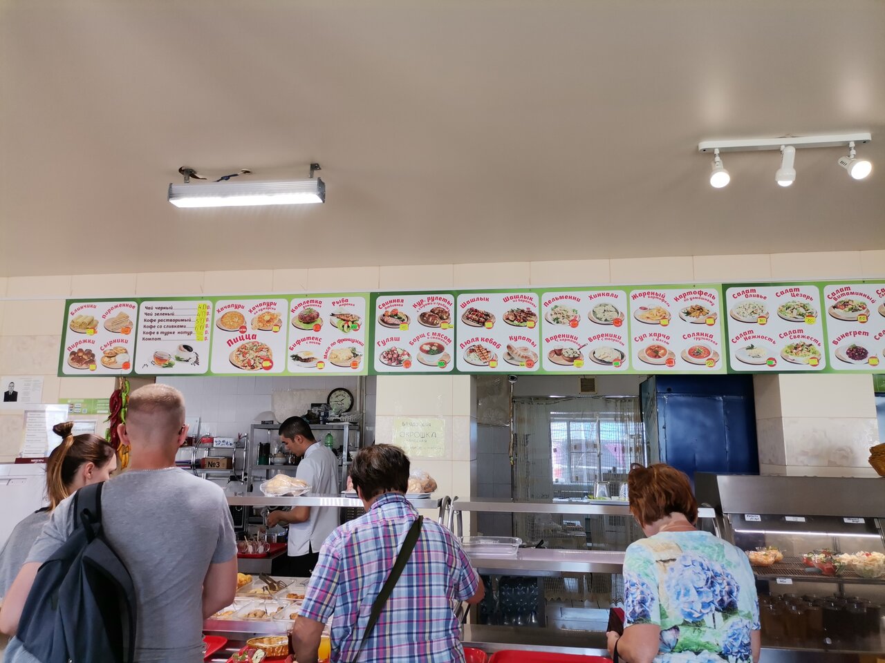 На улице +30, в кафе+28 кондер не работает , окна открыты но был бы ветер может это бы и помогло 🙂 , запах неприятный даже немогу описать не знаю с чем сравнить , купил харчо [350₽ есть можно на 3+], салат из редиски буквально из одной [100₽] захотел в туалет + 25р и не важно что ты у них был в кафе . Короче был в первый и последний раз. Из плюсов парковка и Лента можно купить продукты в дорогу.