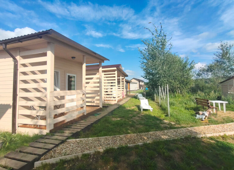Хорошее место, чтобы уехать из города и побыть на природе. Хорошие домики, все чисто и продуманно. Есть все удобства в доме. На улице есть мангал в и столы. В доме есть посуда,но масло, соль, сахар, чай/кофе надо брать с собою. Есть меню для заказа из ресторана в Боровске.