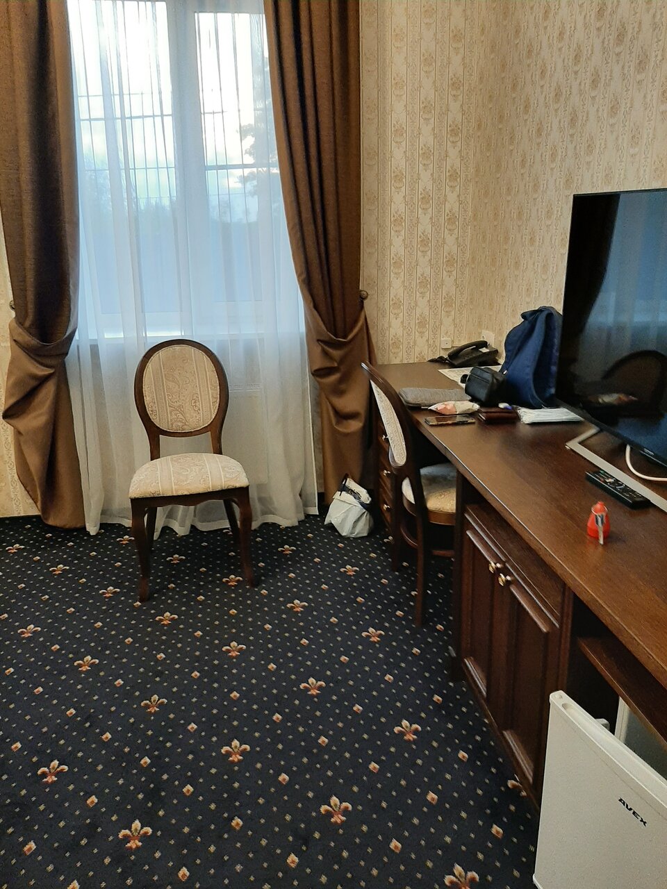 Номер большой, чистый, есть халаты, тапочки, а также холодильник, телевизор. В номере тихо, несмотря на близость трассы. В общем рекомендую, очень приличный отель за относительно небольшие деньги.