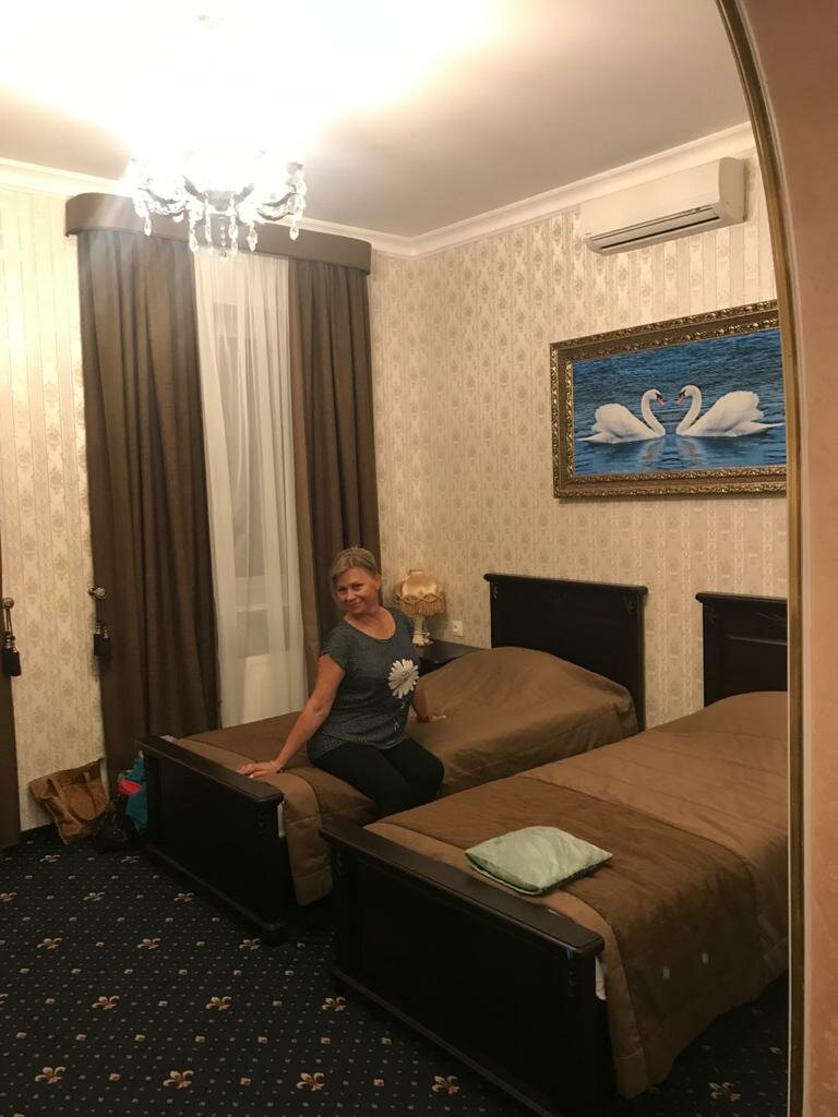 Ехали с супругом и 4мя детьми на юг 6 июня, заранее гостиницу не бронировали. Позвонили за несколько часов до ночлега. Забронировали номер 1-комнатный, по словам администратора это был единственный свободный. По приезду нас приветливо встретили, и как оказалось был свободен ещё один номер люкс, за 8 тысяч. Он двухкомнатный, в итоге мы заселились в него и были очень счастливы номер был по настоящему королевский чистое постельное белье, детям принесли раскладушки, так как на кровати мы не влезали Спасибо за гостеприимство!!! С утра позавтракали в соседнем кафе — очень вкусно всё было