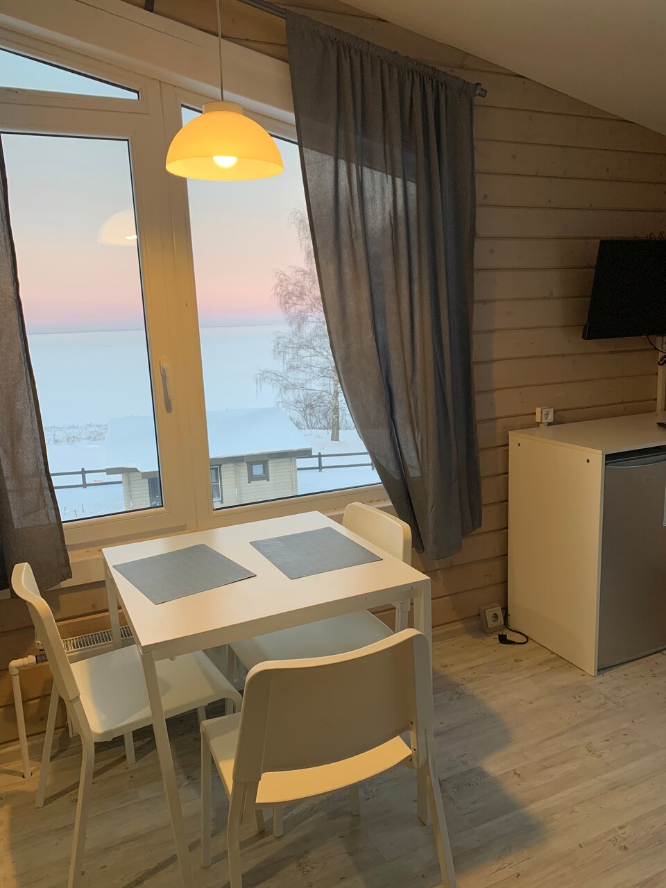 Шикарный вид на озеро, прекрасный персонал, хорошие завтраки и очень вкусный кофе. В домиках и номерах все есть для комфортного проживания