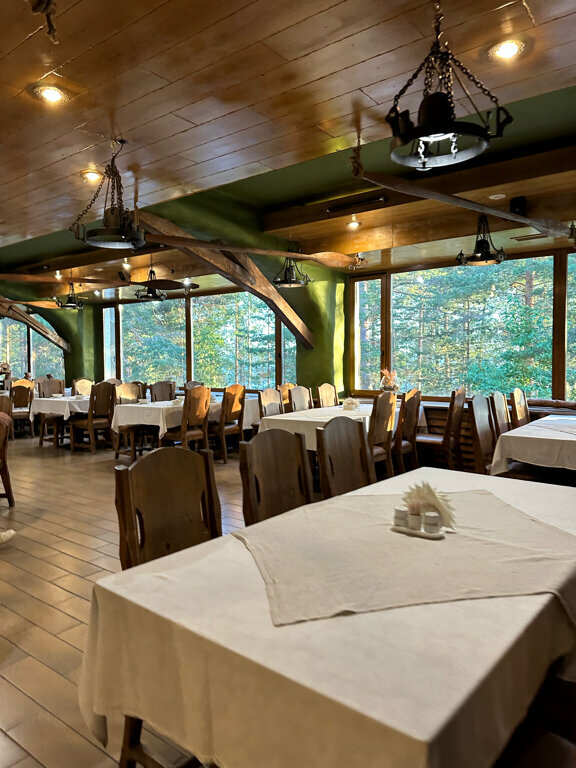 Место расположения — великолепное. Находится в лесу возле воды. Много беседок и мангалов, которые можно свободно испоьзовать на отдыхе. Звукоизоляция в номерах слабенькая, завтрак ‘никакой’.