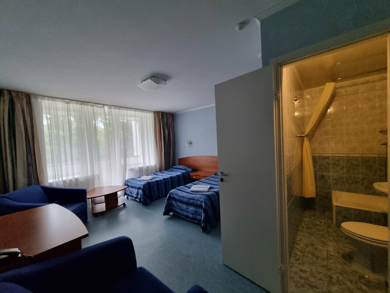 Просто жескачь, Попал суда через тур агенство за хорошие деньги, но такого я не ожидал, может быть для Республики Карелии норм, но я больше сюда не нагой. Белье местами рваное , полотенце разное. Цена не соответствует качеству. В душевой плитку которая отвалилась зацепили саморезами. Батарея не работает, дали обогреватель.Вода петьевая только за деньги. Чайника в номере нет. Еда так себе. И пол ночи спариваются , шумо изоляция 0. В целом по 10 балльной дам (- 5). Если есть возможность, а она есть всегда, лучше в другое место.