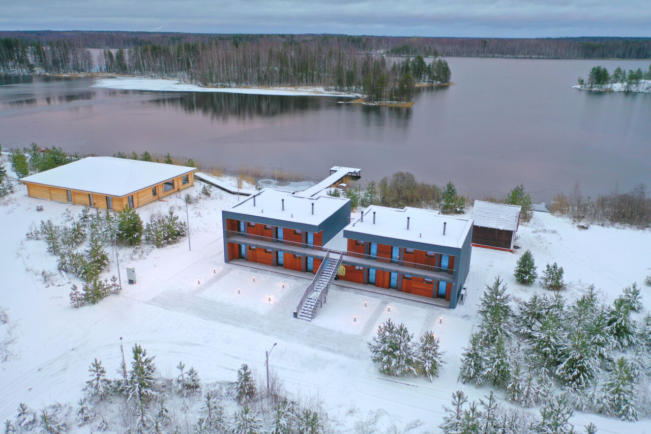 Новейший отель на самом берегу озера. Все номера видовые с балкончиками- чистые, теплые , в которых есть все необходимое. На территории мангальные зоны с беседками, баня с отдельным пирсом, основной пирс, ресторан будет открыт к летнему сезону — представляю , какая красота будет — шикарный вид на озеро за ужином. Очень понравилось проживание — все комфортно, тишина и красота вокруг — ‘зимняя сказка’, удобное расположение . Рядом ‘Долина зайцев’, гора Сампо, Марциальные воды. Спасибо администратору Ирине , да и всей администрации- все приветливы, любые просьбы выполнялись моментально — все на высшем уровне!