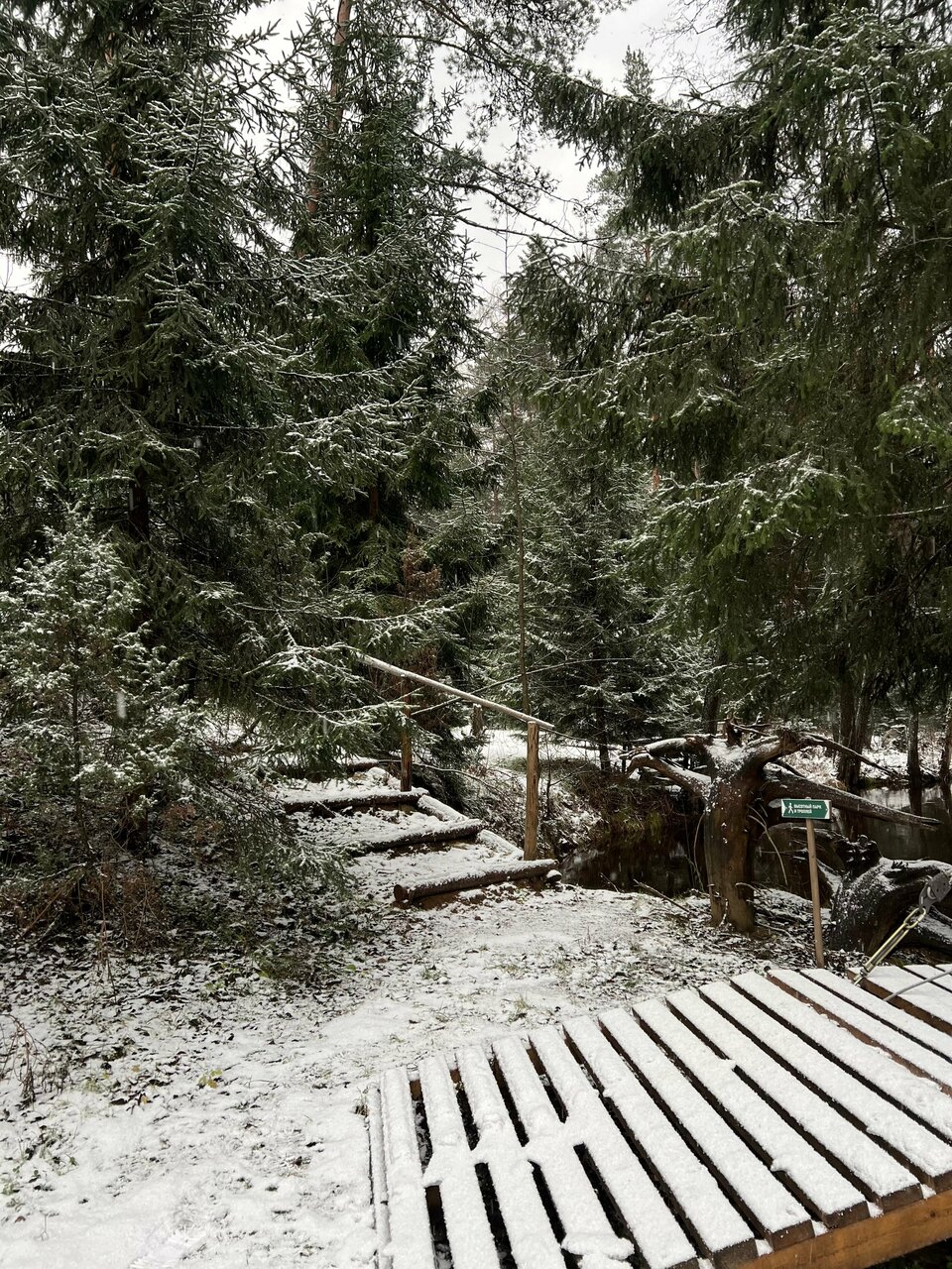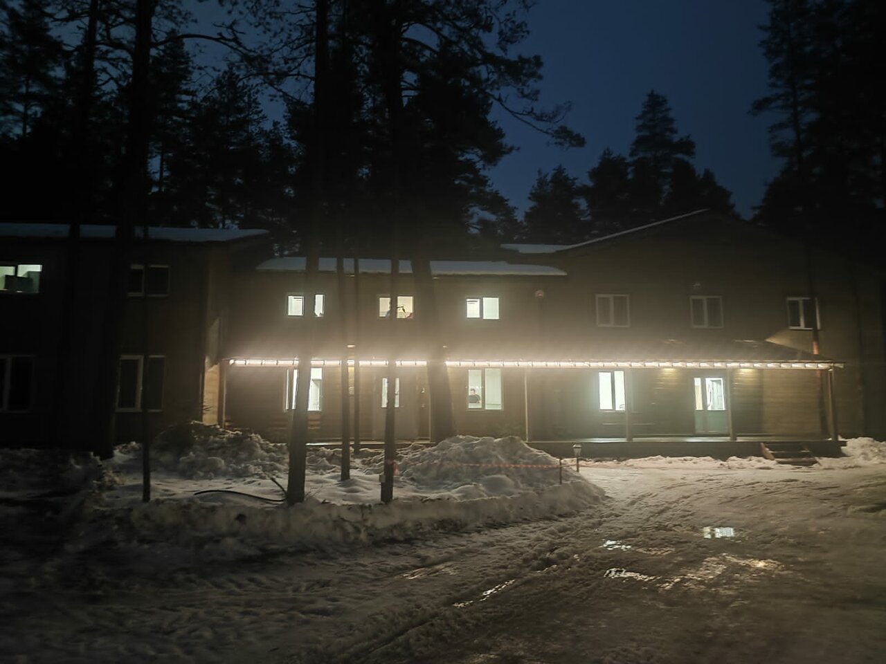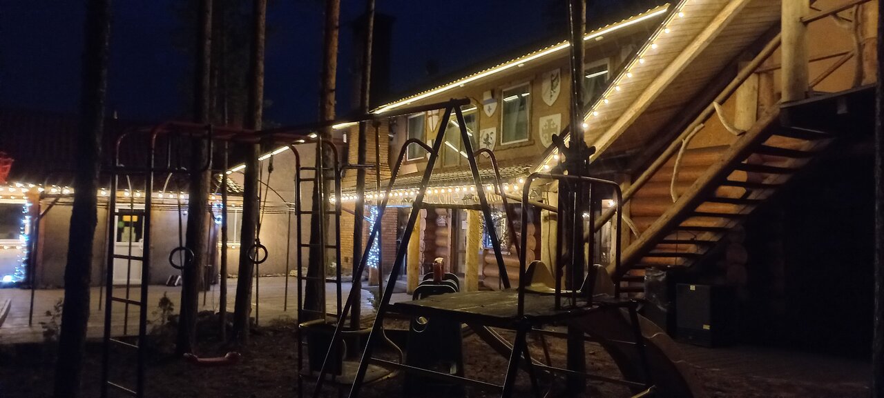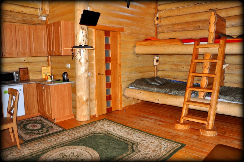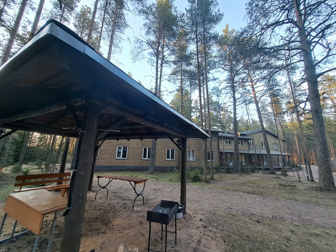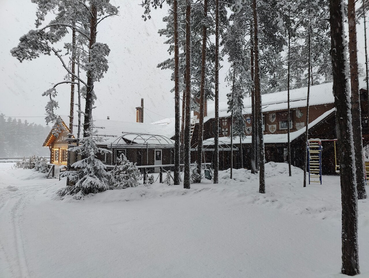 Были двумя семьями с 2 годовалыми детьми. В целом отдых понравился и оставил только положительное впечатление. Приветливый, отзывчивый персонал. Достаточно вкусные, сытные и не малые порции завтраков. По комфорту: в шале с двумя спальнями на две семьи — достаточно комфортное размещение. Предоставляются полотенца, постельное белье, посуда. В домиках есть холодильник, микроволновка, чайник, тв, интернет. Нет плиты, но учитывая, что завтрак входит в стоимость аренды домика, а обед с ужином как правило готовили на костре, то особого дискомфорта ее отсутсвие не доставило. Вода, как и писали в предыдущих отзывах, действительно имеет сильный запах, так что питьевую лучше взять свою. Из развлечений для детей: две детские площадки, конечно, не городские, но вполне даже). В целом все хорошо. Планируем вернутся сюда за брусникой) Единственное, что немного напрягало- змеи) но, они везде, если выбирать место отдыха в хорошей лесной зоне)))