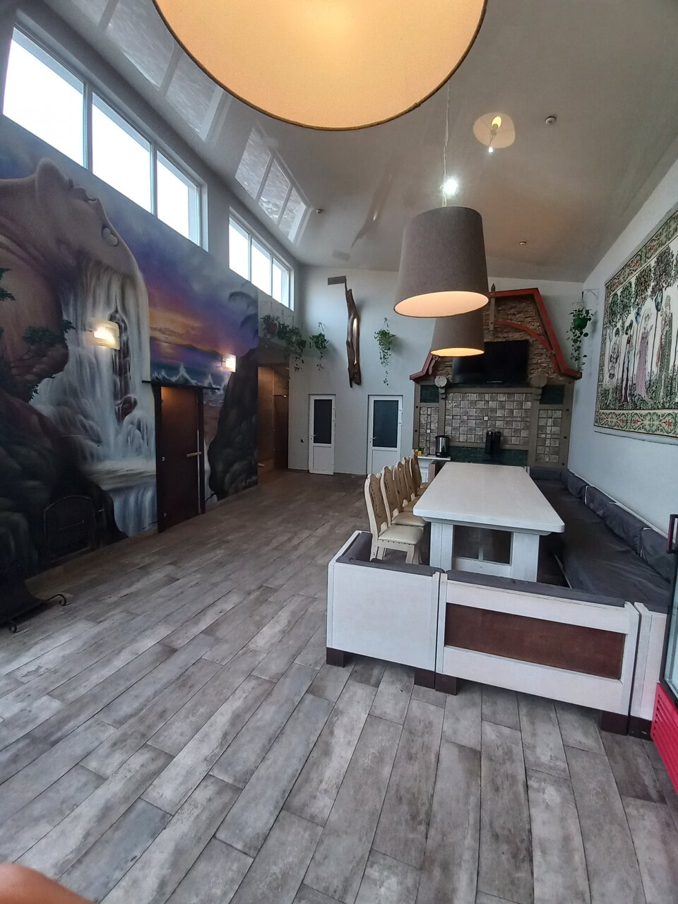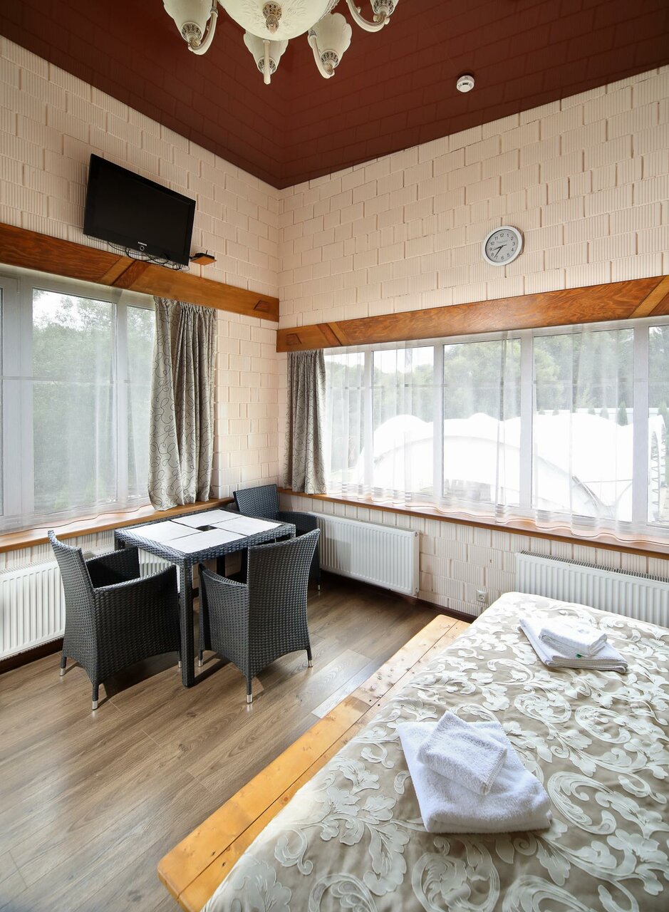 - Подогрев пола в номерах.; Сауна, хамам, бассейн с подогревом.; Красивое место рядом с рекой.; Возможность рыбалки и отдыха у реки.; Внимательный и приветливый персонал (особенно на ресепшене и в кафе).