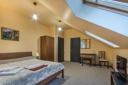 Останавливались здесь на ночь с ребенком. Все хорошо. Мы ехали со стороны Москвы- нас встретили на машине от остановки общественного транспорта, заселили, покормили (и даже присмотрели за ребенком), и ранним утром отвезли на трансфере в аэропорт. В номере чисто, есть все необходимое, вплоть до одноразовых зубных щеток и пасты. Ремонт в номерах старенький, но это мелочи, главное, что все чистенько и персонал очень доброжелательный. Могу только пожелать дальнейшего процветания.