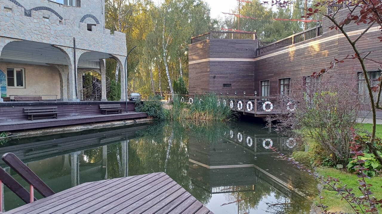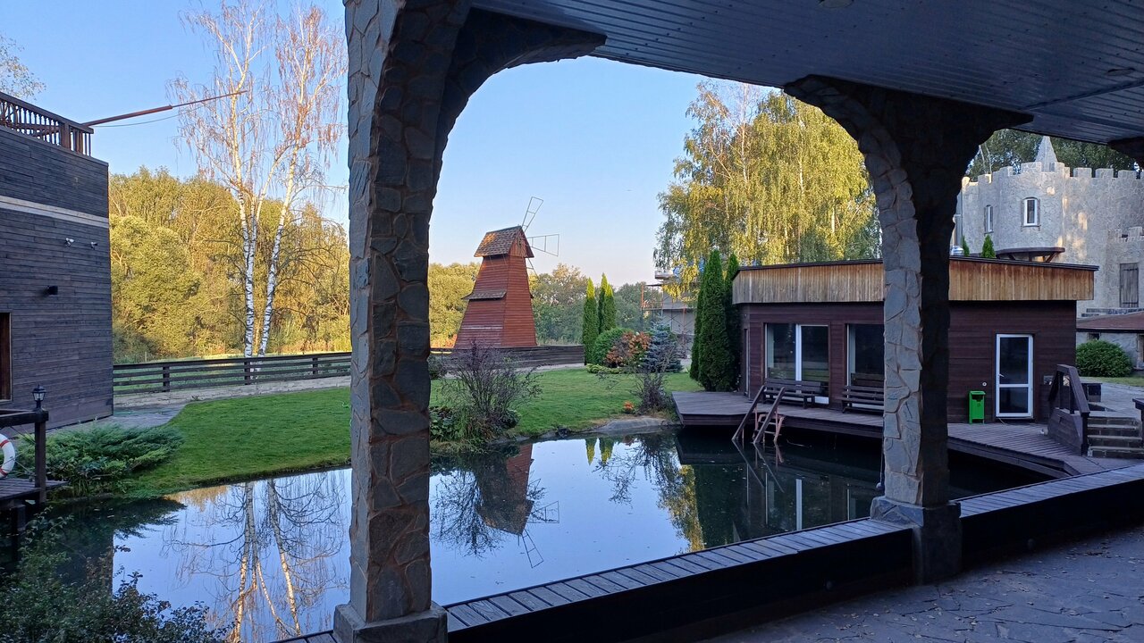 Отель приятный, небольшая ухоженная территория, номера, хоть и с косяками, но всё работает, фен, кондиционер, телевизор. Полотенца, тапочки, гель для душа, шампунь и мыло дают по количеству гостей. Также в номере чайник, чашки, чай, сахар. В пруду можно половить рыбу. Есть бассейн, вода тёплая, ребёнку очень понравилось. Баню не смотрели. Есть кафе. Меню очень простое, но голодными не останетесь.