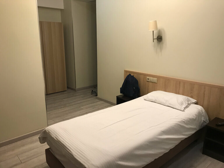 + Номер просторный, туалет, душ в номере, постельное бельё без пятен чистое, подушки 50х70 как надо. - Не работал телевизор проблема с антенной, пульт с продавленными кнопками тоже не работал так и не смог настроить.