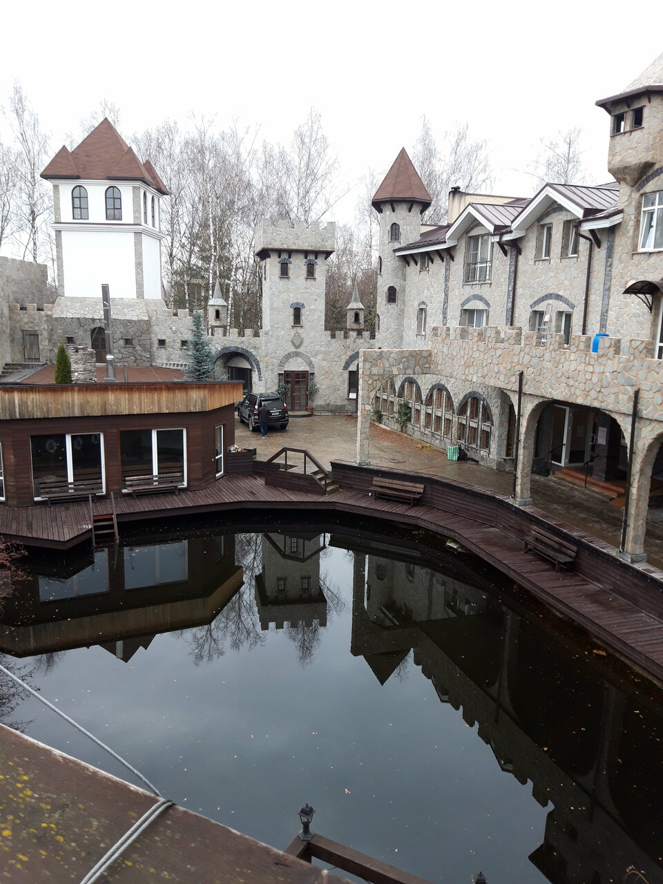 Как там красиво! Мы останавливались на сутки, но провели с удовольствием прогуливаясь рядом с домом, где есть пруд, в котором котику ловили рыбку. И даже ‘контактный зоопарк’-утки безголосые, так мило. Вокруг зелень, лавочки, ресторан для торжеств в виде корабля. Загляденье. В отеле комнаты хорошие и белье с полотенцами белоснежные. Одноразовые принадлежности для душа, фен. При отеле есть мини кафе, где администратор приготовит под заказ. Но дороговато. В холе кулер где можно набрать горячей воды, а на завтрак мы купили, в магазине через дорогу, пирожков. И главное — бесплатный трансфер.