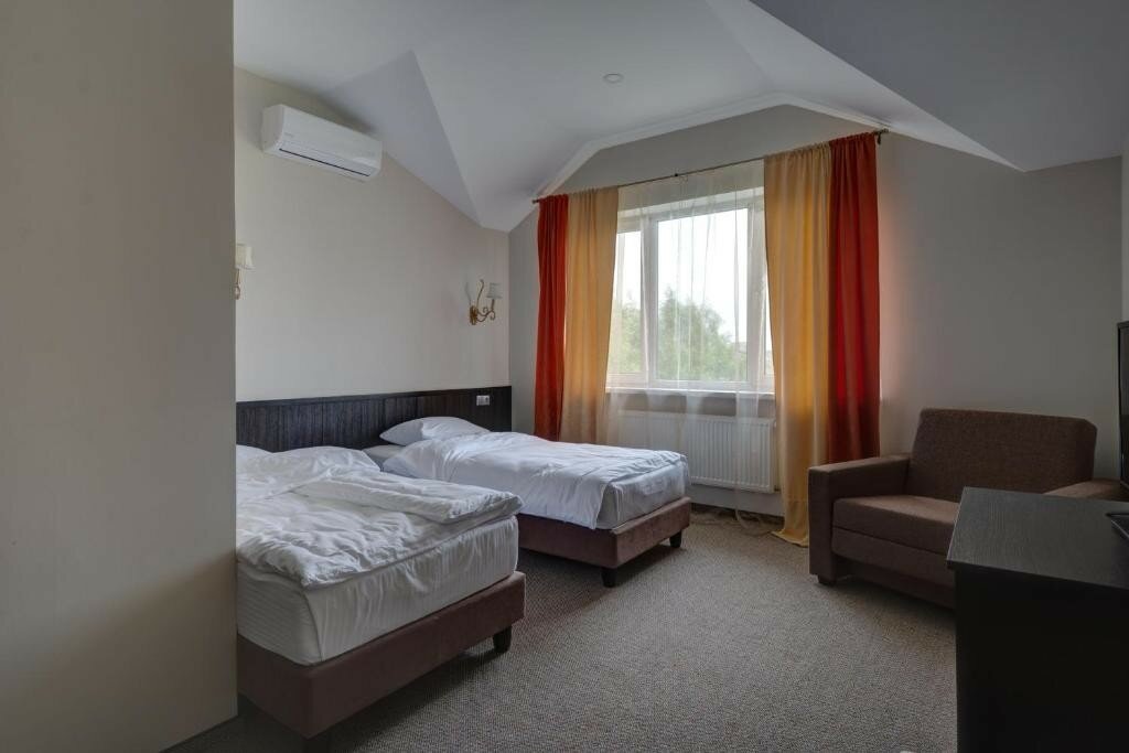 Хорошая гостиница, ухоженная территория! Из минусов, это отсутствие в некоторых номерах холодильников.