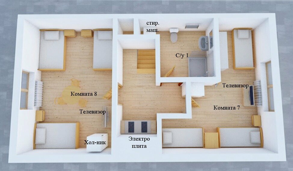 Формат: гостевой дом с совмещёнными номерами и общим туалетом.