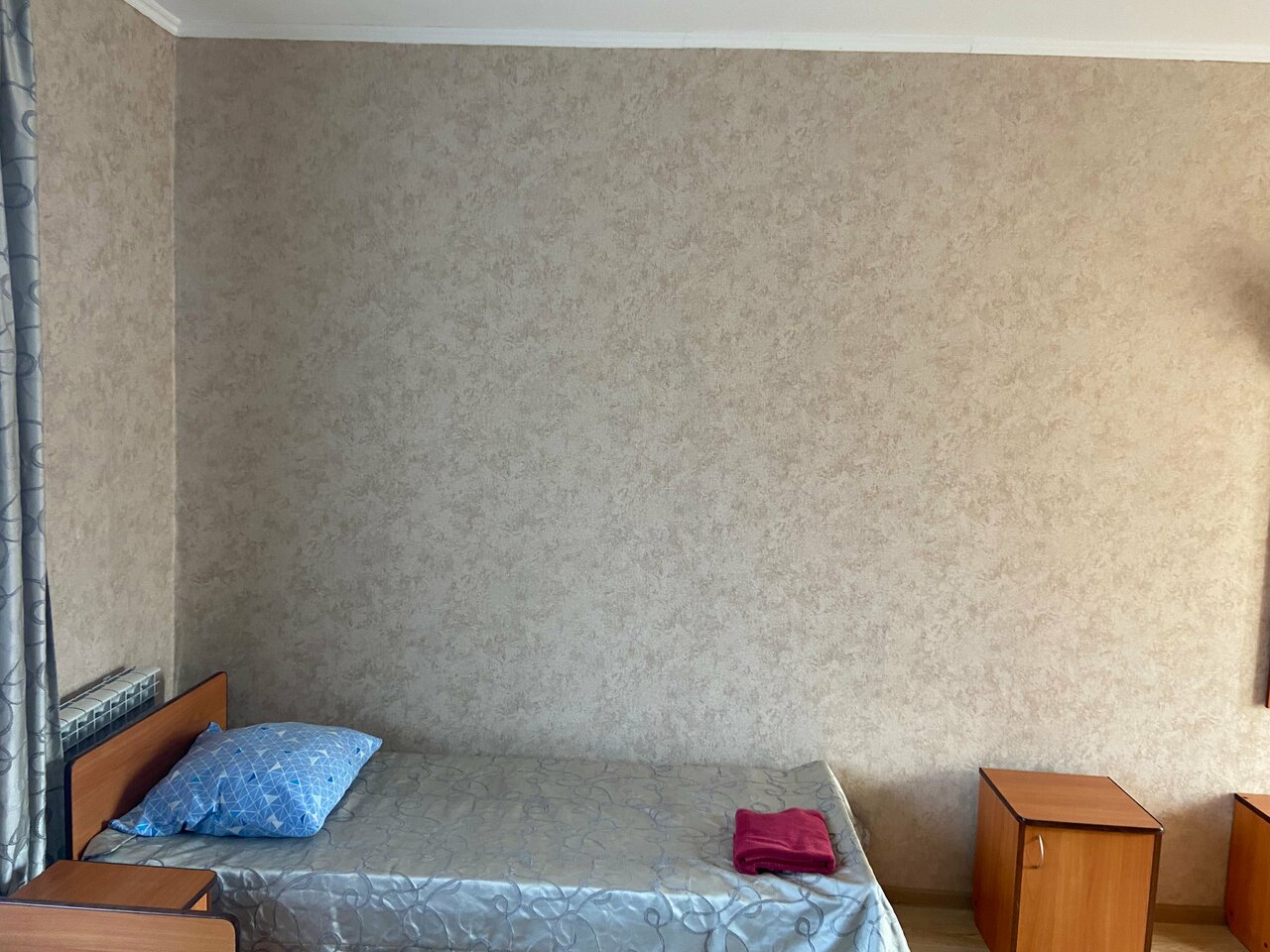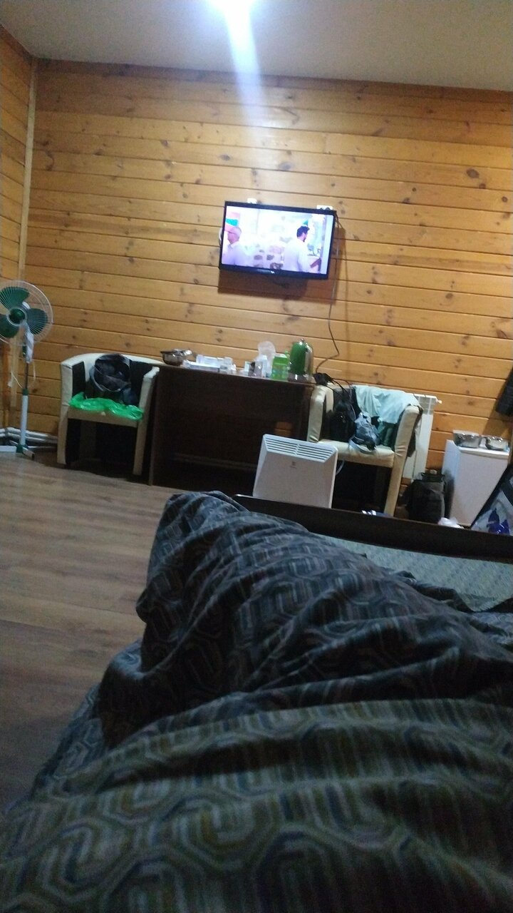 Ночевали в восьмом номере, двухместный с двумя отдельными кроватями. За 2 т, плюс сто парковка. Приехали поздно, нас тепло встретили, дали чайник. Удобное место. Дочке кровать была жестковата. Кровать бывалая, с пружинами. Номер чистый. Мне нормально было спать. Даже шум дороги не мешал. Шторы блекаут Выспались отлично. Спасибо! Для своих задач — всё ок!