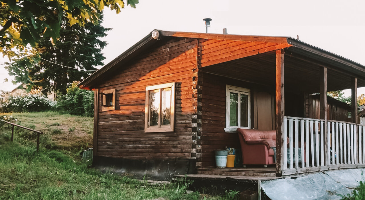 - Расположение в тихой деревне на берегу озера/реки.