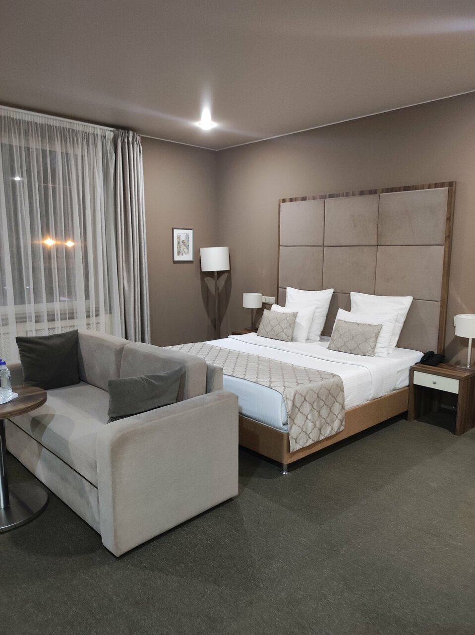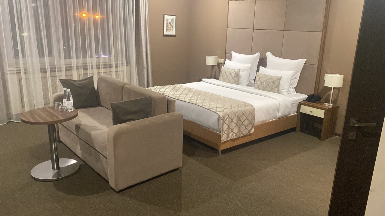 Номера категории Standard удобны и функциональны, в них позволяет отдохнуть одна двуспальная кровать с прикроватным пуфом. Два уютных кресла с кофейным столиком и торшер с приглушенным светом.