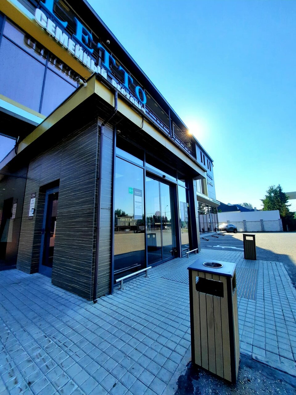 - Наличие супермаркета (Мираторг), пекарни и ресторана в здании.