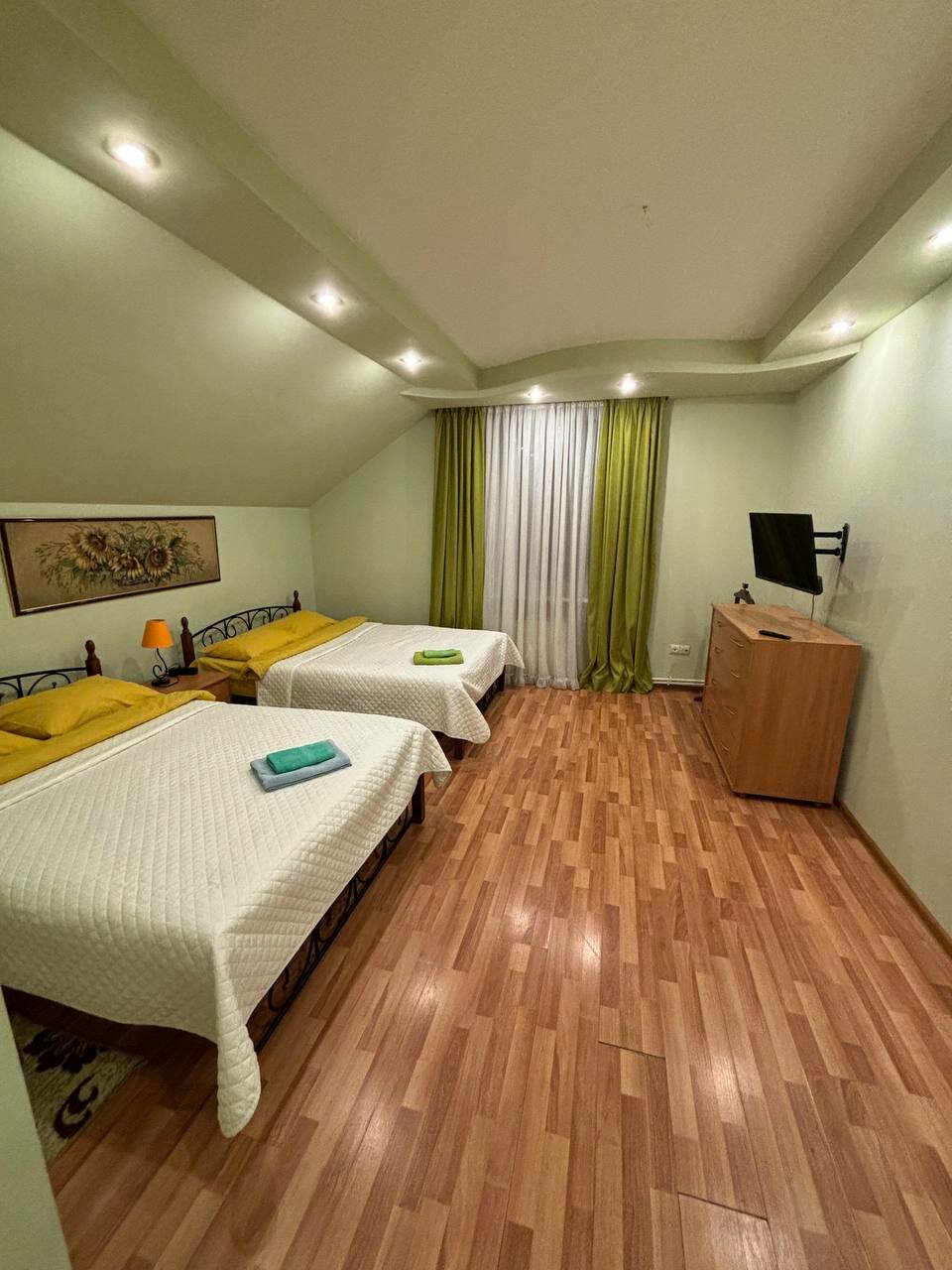 Просторный номер с двумя односпальными кроватями. Окно во двор