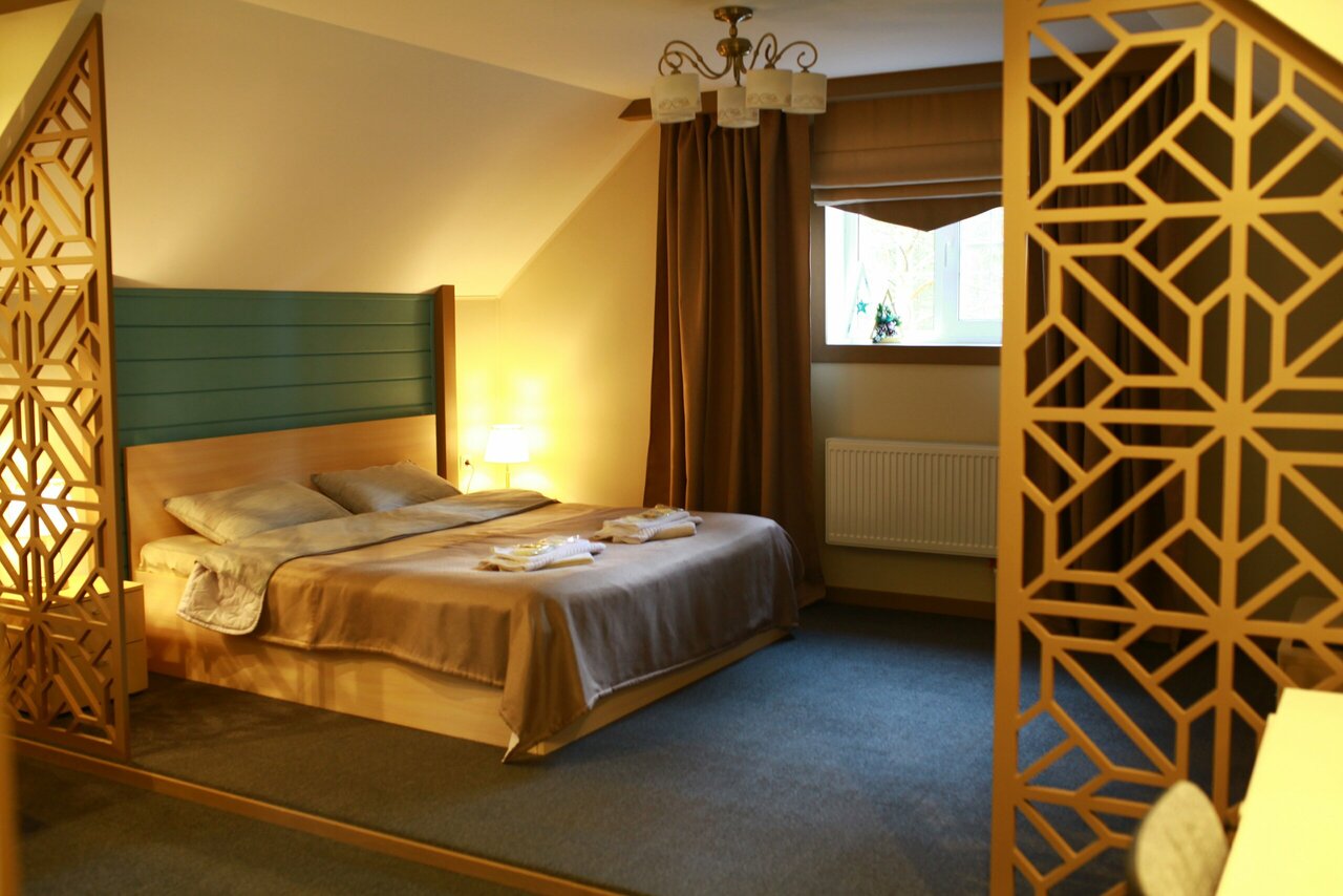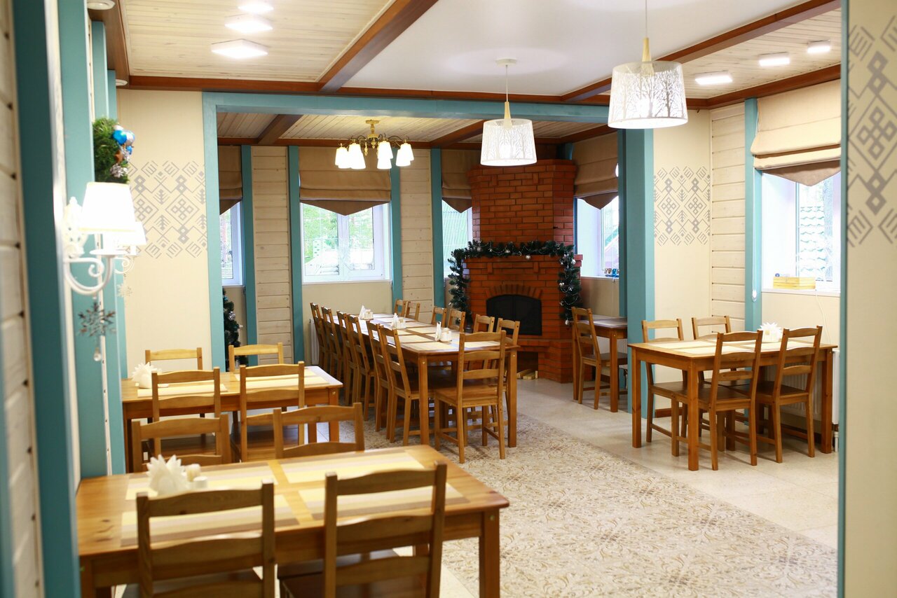 Были приятно удивлены чистотой и уютом номера и всего домика в целом. Кровати удобные, белье чистое, в номере тепло, все работает. Есть общая кухня (можно с продуктами приехать и самому приготовить). Можно на шведский стол сходить в столовую можно в кафе. Много всяких мелочей в интерьере для красоты и уюта — видно что люди старались чтобы было красиво. И продолжают стараться все поддерживают в чистоте и порядке и внутри и снаружи. Не все прям идеально есть некоторые вещи сломанные или ‘усталые’ но в целом все хорошо. Бонусом в цоколе бильярд и теннис настольный.) тоже здорово). Природа и территория вокруг огонь! Непривычно только вода странная из крана, после неё кожа как будто мыльная(почитал в инете, написано, что это ‘мягкая вода’ ничего страшного вроде. Видимо природная особенность местности).