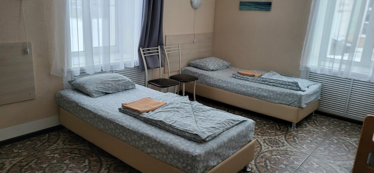 Услуги: — Номера (1200–2000 ₽/ночь) с холодильником, ТВ, Wi-Fi, общей кухней и посудой. — Бесплатная парковка, проживание с животными. — Ускоренная регистрация (заезд с 12:00, выезд до 10:00).