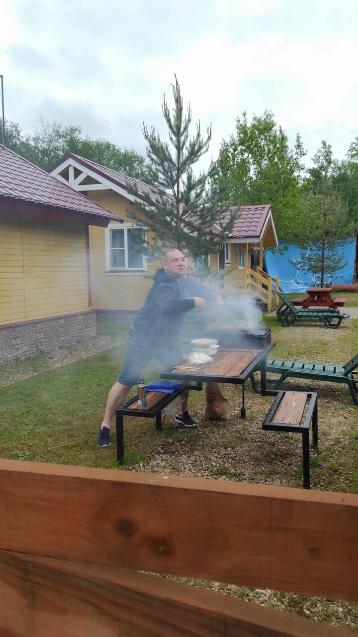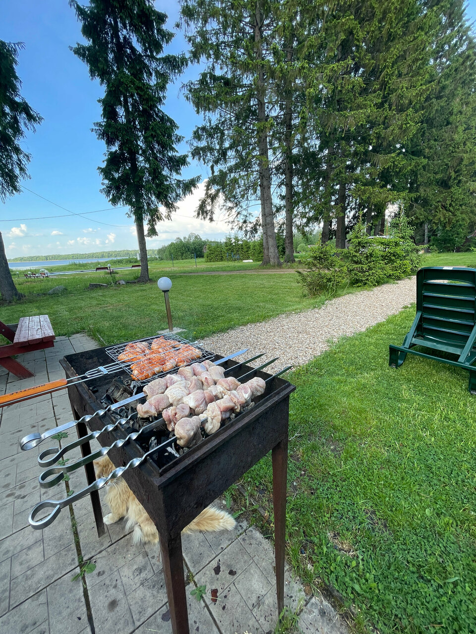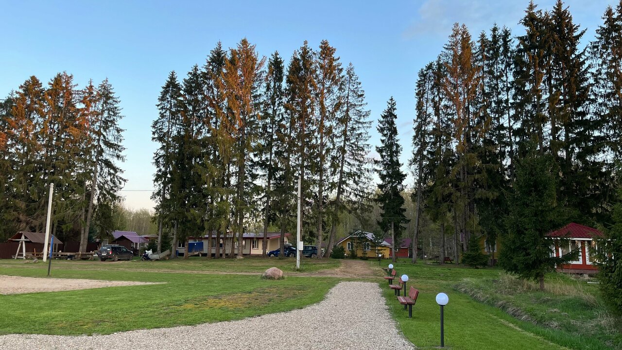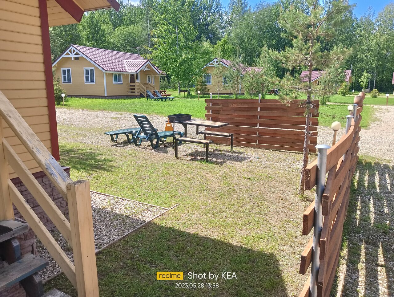 Очень приятный хозяин , супер место для отдыха с детьми ! Чудесная детская площадка , баня просто супер !!! Большая беседка , красивый вид на озеро , уютные домики ! Супер место !!!!