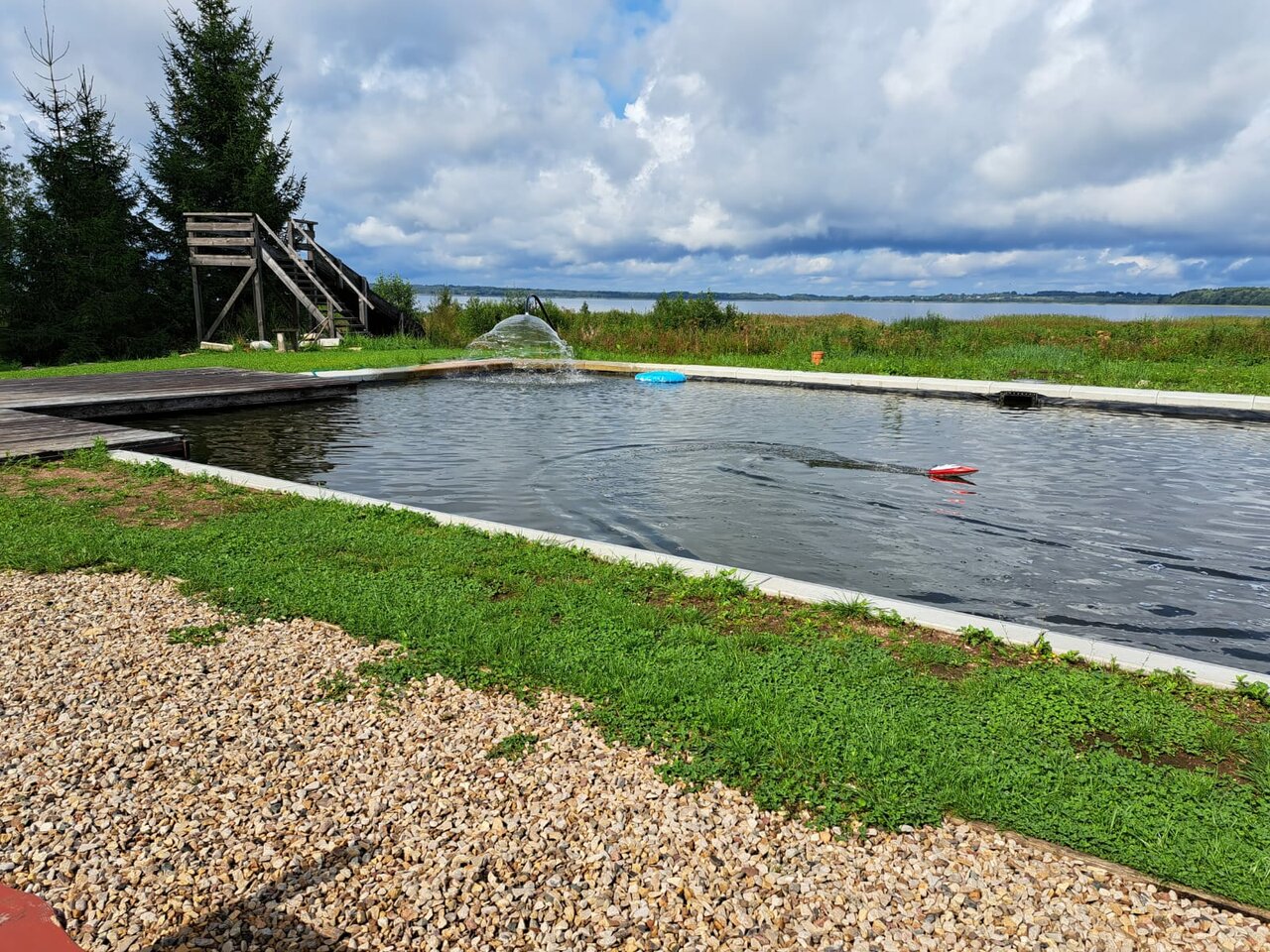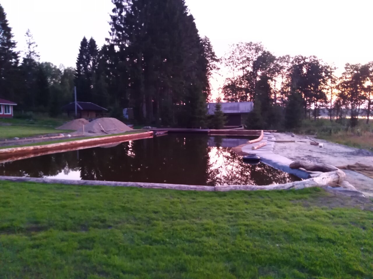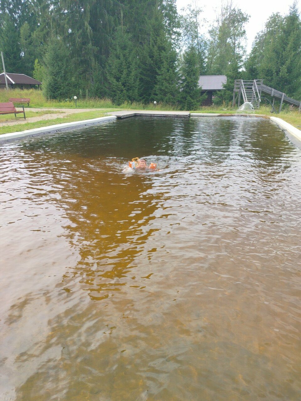 Очень приятный хозяин , супер место для отдыха с детьми ! Чудесная детская площадка , баня просто супер !!! Большая беседка , красивый вид на озеро , уютные домики ! Супер место !!!!