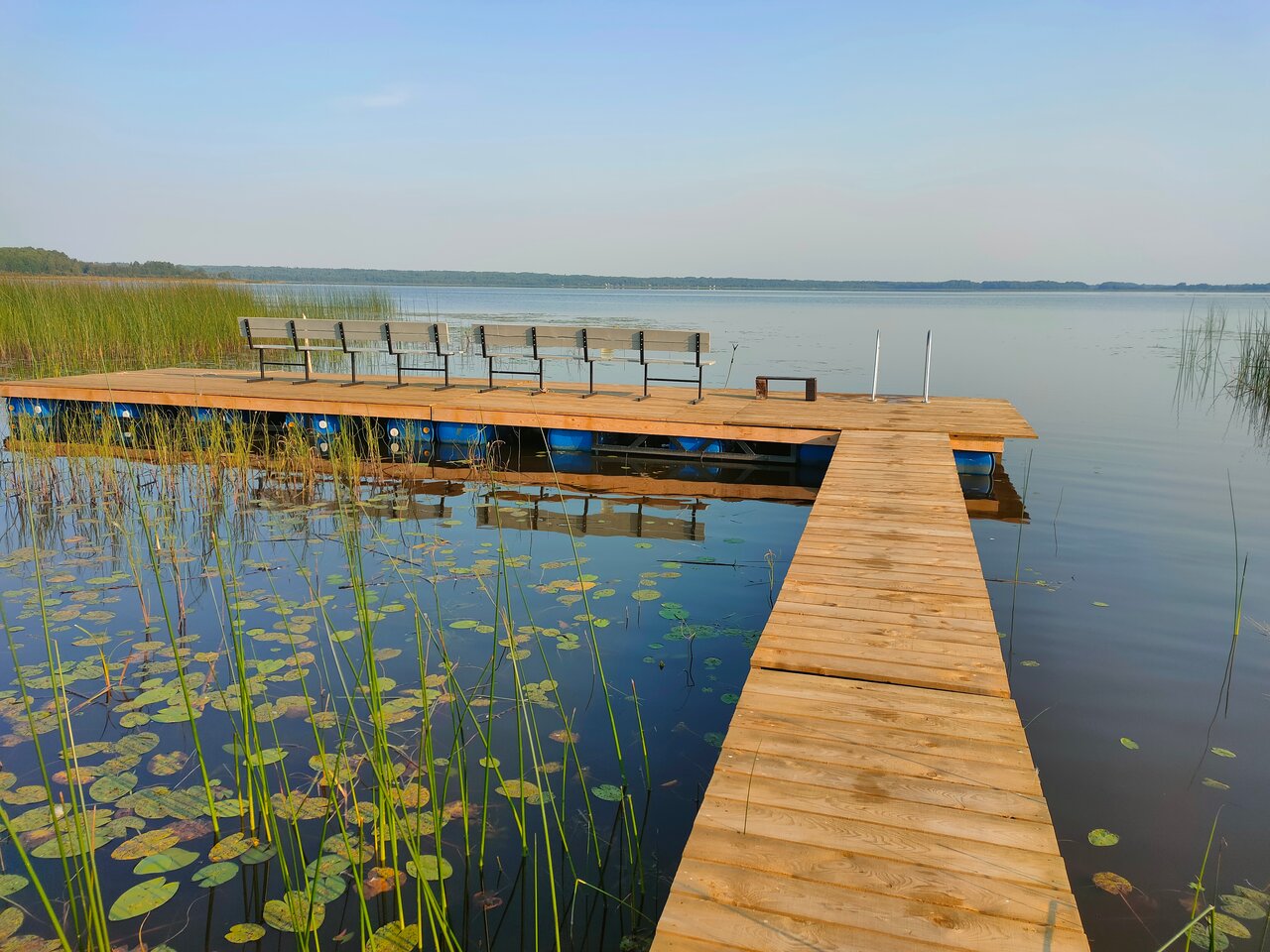 В целом неплохие домики и ухоженная территория. Снял звезду за сомнительную рыбалку. Пирс постоянно занят купающимеся или о рыбаками, а других точек в Любимке нет. Рыбакам не советую — одна уклейка и молодь плотвы с подлещиками до 100гр.
