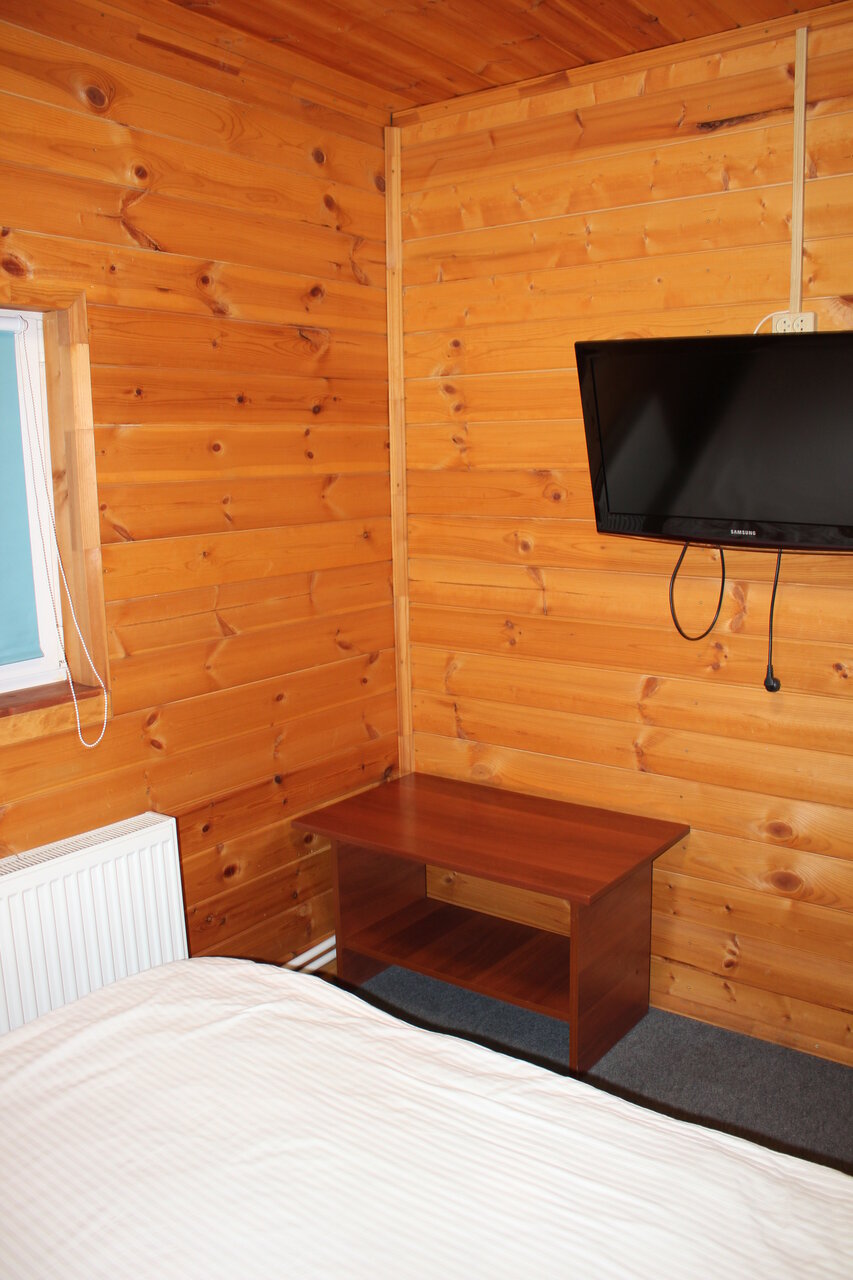Номер — отдельный мини-домик, квадратов 20. Показался немного неприятный запах внутри. Зубных щеток и пасты не было в наличии. Чайника и минимальной посуды тоже. Модно бы было сделать ремонт. А так, за свою цену, наверное не худший вариант