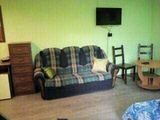 переночевать с дороги пойдет. кровати чистые, тапки выдаются одноразовые. но телек не плоский — мизерный кинескопный. есть курилка и холодильник с пивом после 22. санузел наполовину без света, очень тесный.
