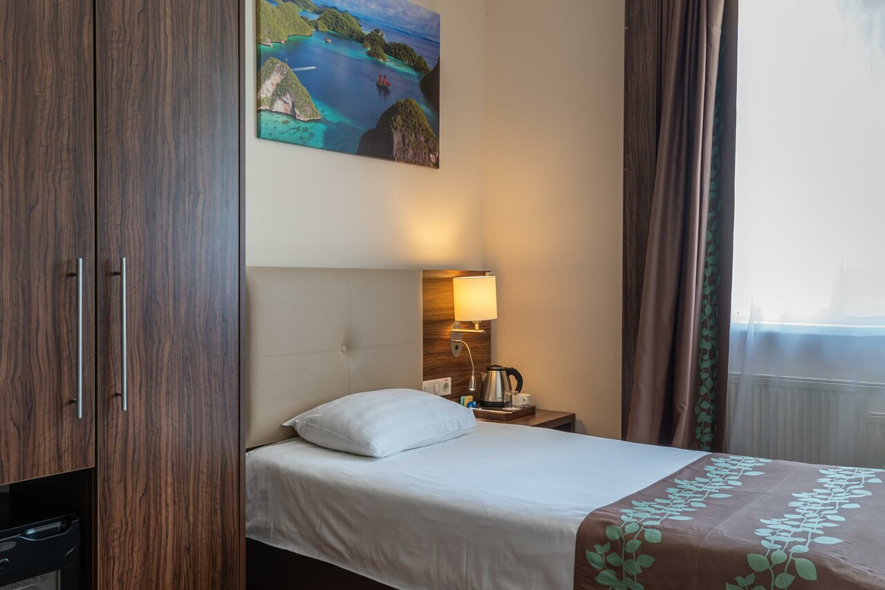 Отличная гостиница, чистые т удобные номера, в кафе шведский стол, вкусная еда, демократичные цены. Имеется парковка. Расположение рядом с автобусными остановками, ходят часто, до ближайшего метро 6 км.